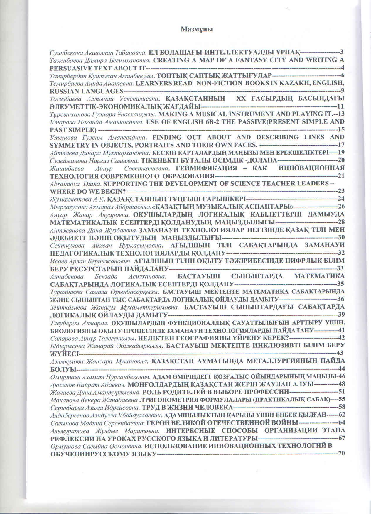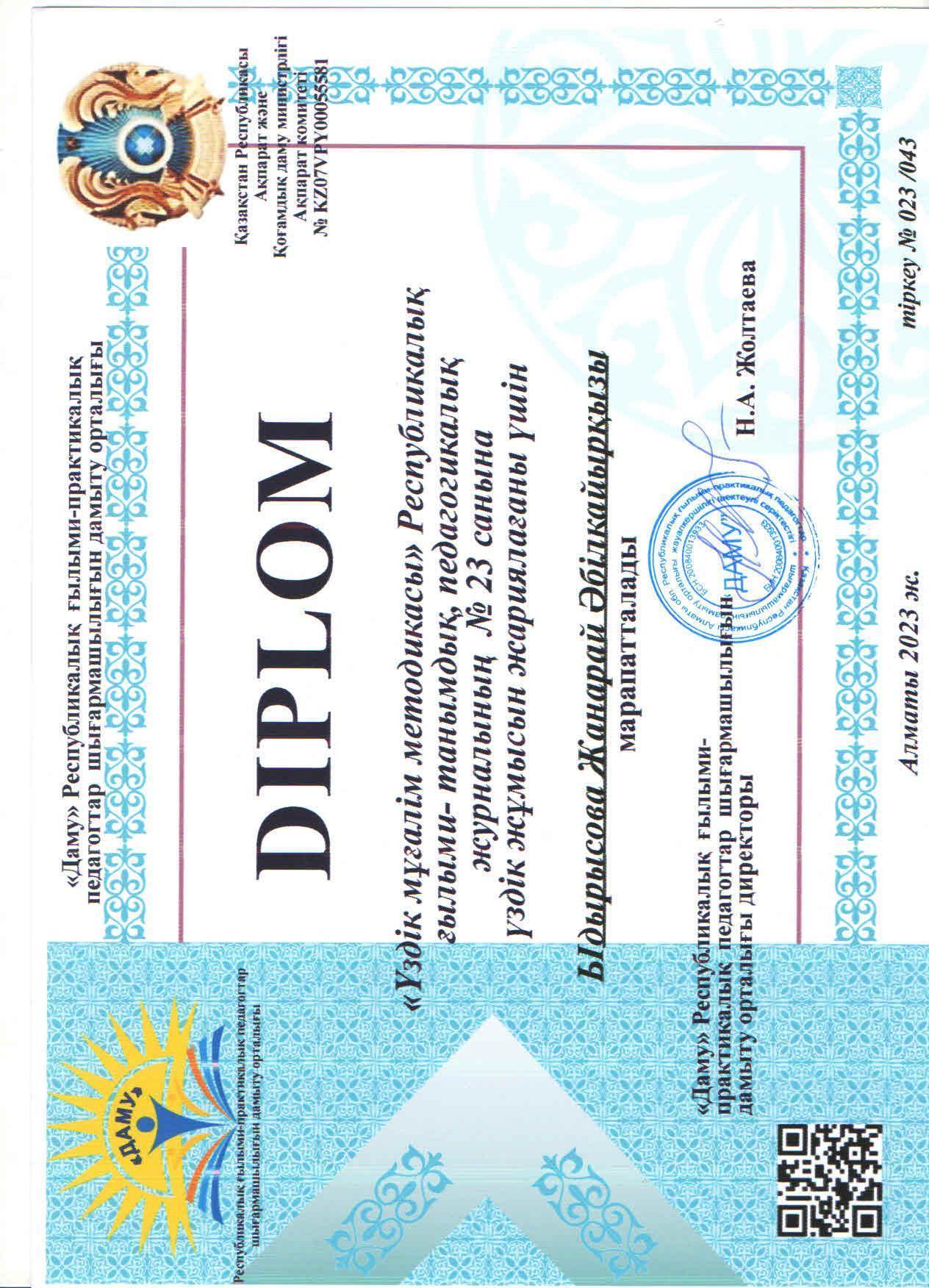 "Үздік мұғалім методикасы" атты республикалық, ғылыми-танымдық педагогикалық журналына мектеп психологы Ж.Ыдырысованың "Бастауыш мектепте инклюзивті білім беру жүйесі" тақырыбындағы мақаласы жарияланып, Дипломмен марапатталды.