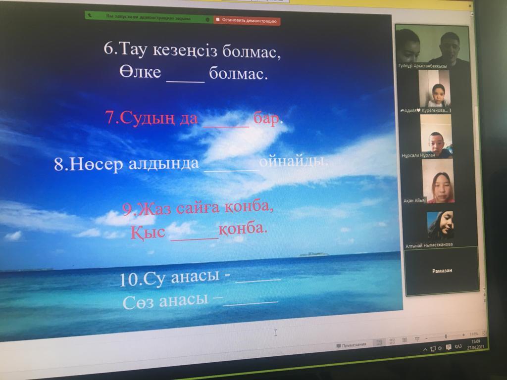 "Біз болашаққа жауаптымыз" апталығы аясында 5-6 сыныптар арасында "Халықтық нанымдар, жұмбақтар, табиғатқа ұқыпты қарау туралы мақал-мәтелдер" сайысы болып өтті.