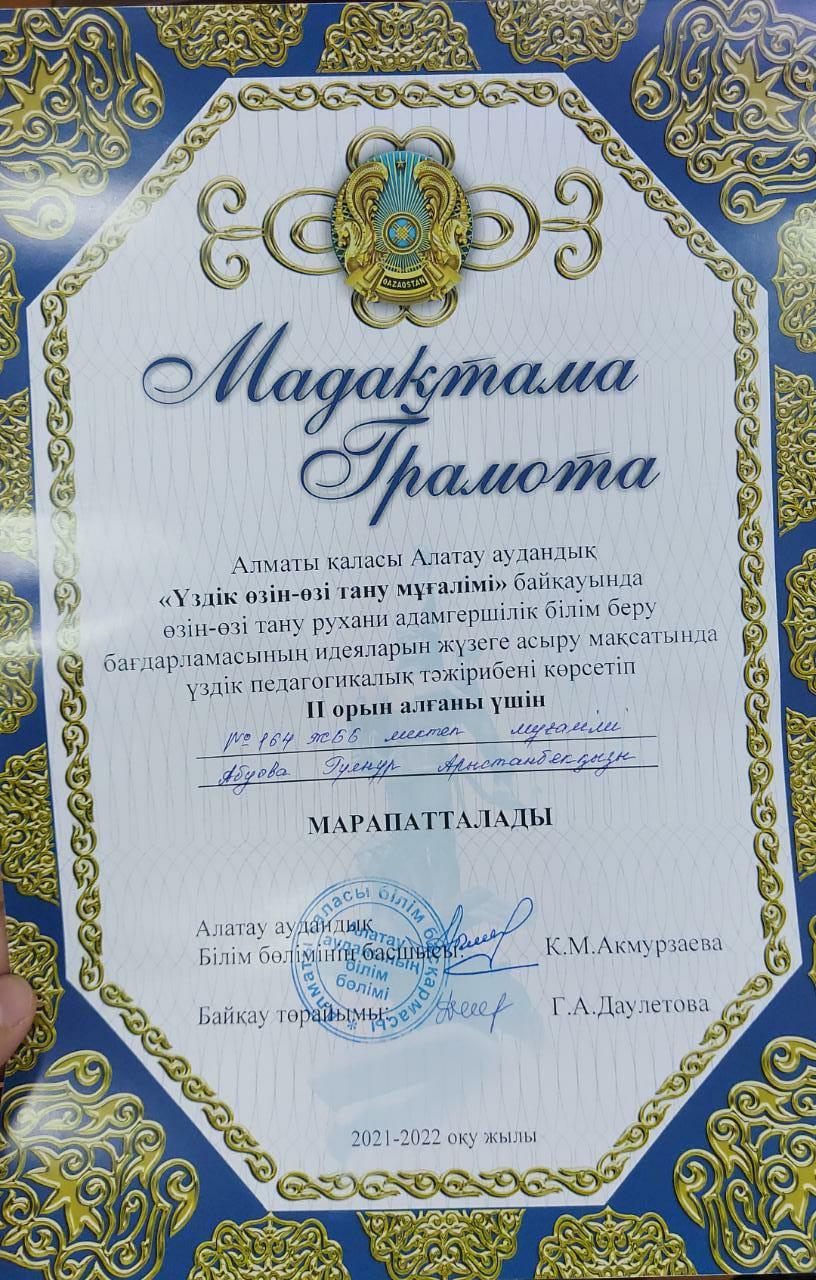 25 қазан 2021 0 1 2 3 4 5 Аудандық "Үздік өзін-өзі тану мұғалімі" байқауына мектебіміздің өзін-өзі тану пәні мұғалімі Г.Абуова қатысып,жүлделі ІІ орынға ие болды. Осы беттің QR-коды:QR-код этой страницы: