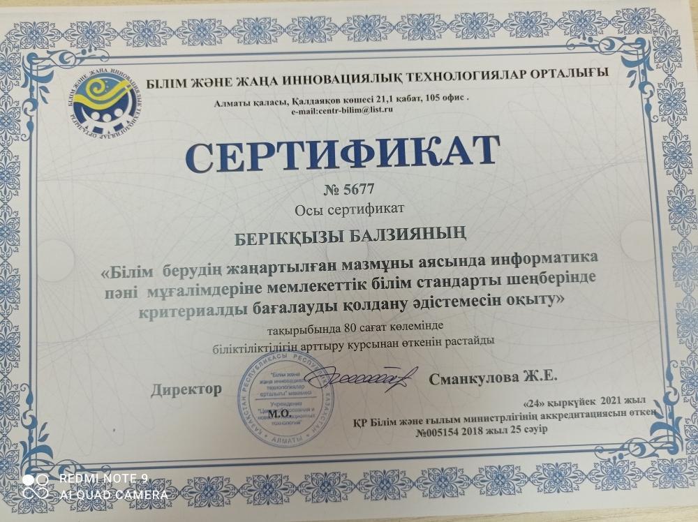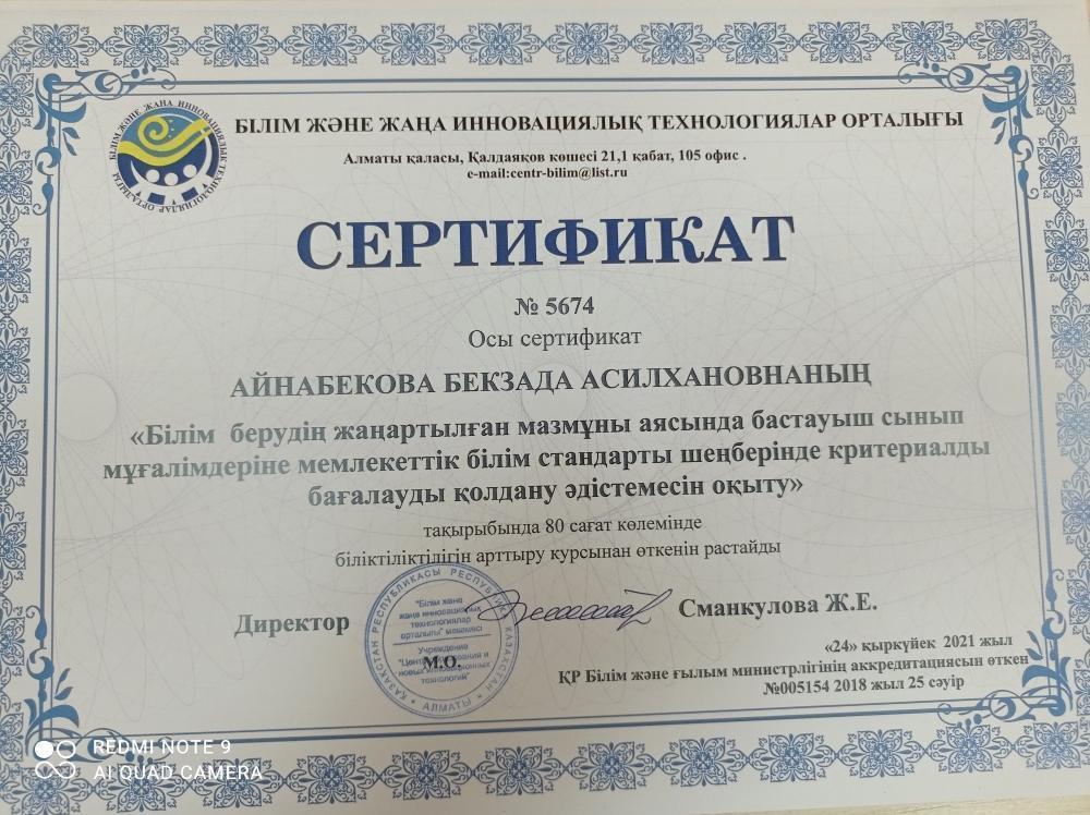 08 қараша 2021 0 1 2 3 4 5 Мектебіміздің мұғалімдері Білім және жаңа Инновациялық технологиялар орталығы ұйымдастырған біліктілік арттыру курсынан өтті Осы беттің QR-коды:QR-код этой страницы: