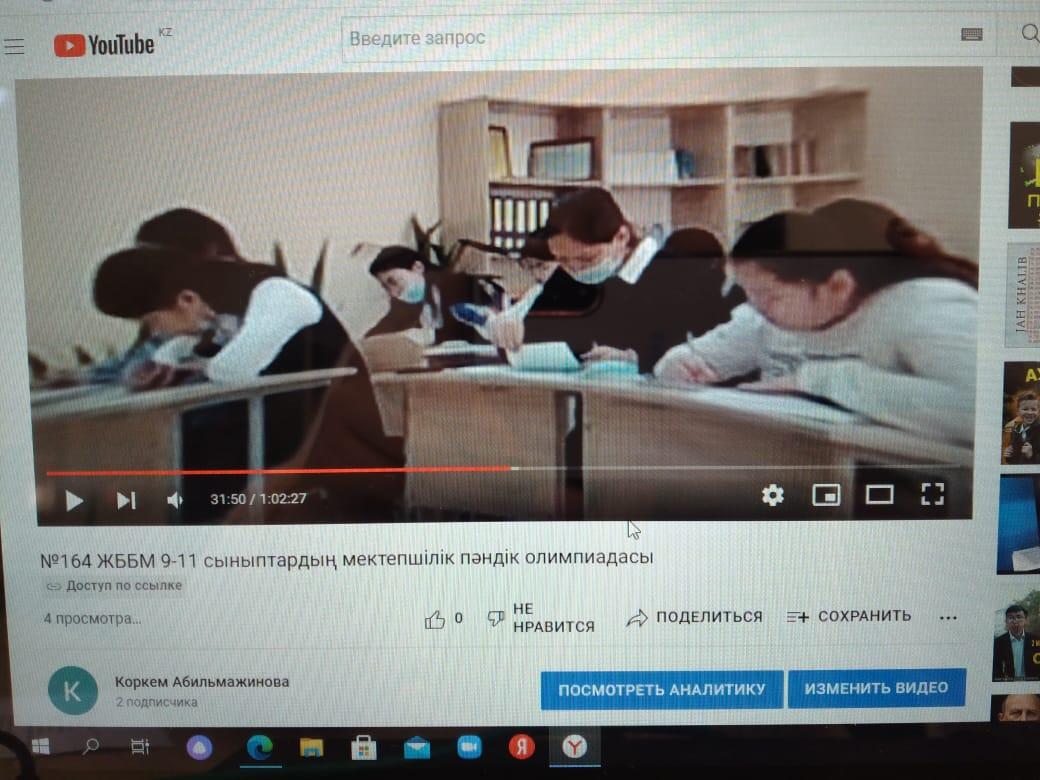 №164 Жалпы білім беретін мектеп » Ақпарат » Мектебімізде 9-11 сыныптар бойынша Республикалық пәндік олимпиаданың мектепішілік кезеңі өткізілді. Мектепішілік кезеңге 64 оқушы 12 пән бойынша олимпиада тапсырмаларын орындады. Жоғары ұпай жинаған 36 оқушы алдағы аудандық кезеңге қатысады.