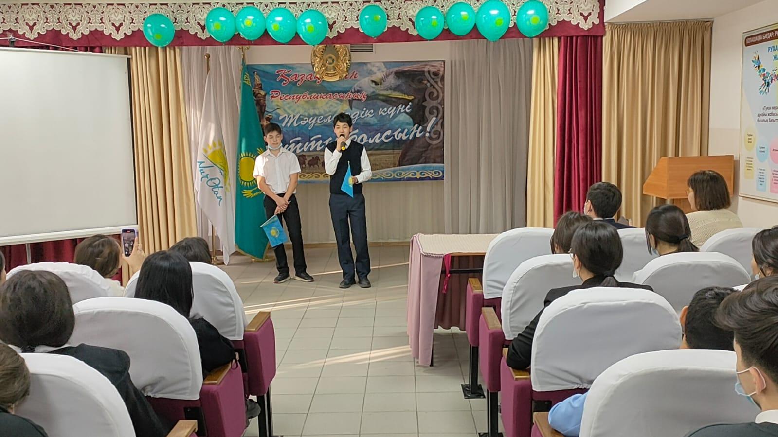 Мектебімізде Тәуелсіздігіміздің 30 жылдығына байланысты, "Елімнің бақытын тербеткен Тәуелсіздік!" тақырыбында мерекелік іс-шара өткізілді. Мерекелік іс-шараның қонағы желтоқсаншы Юсупов Сейдолла