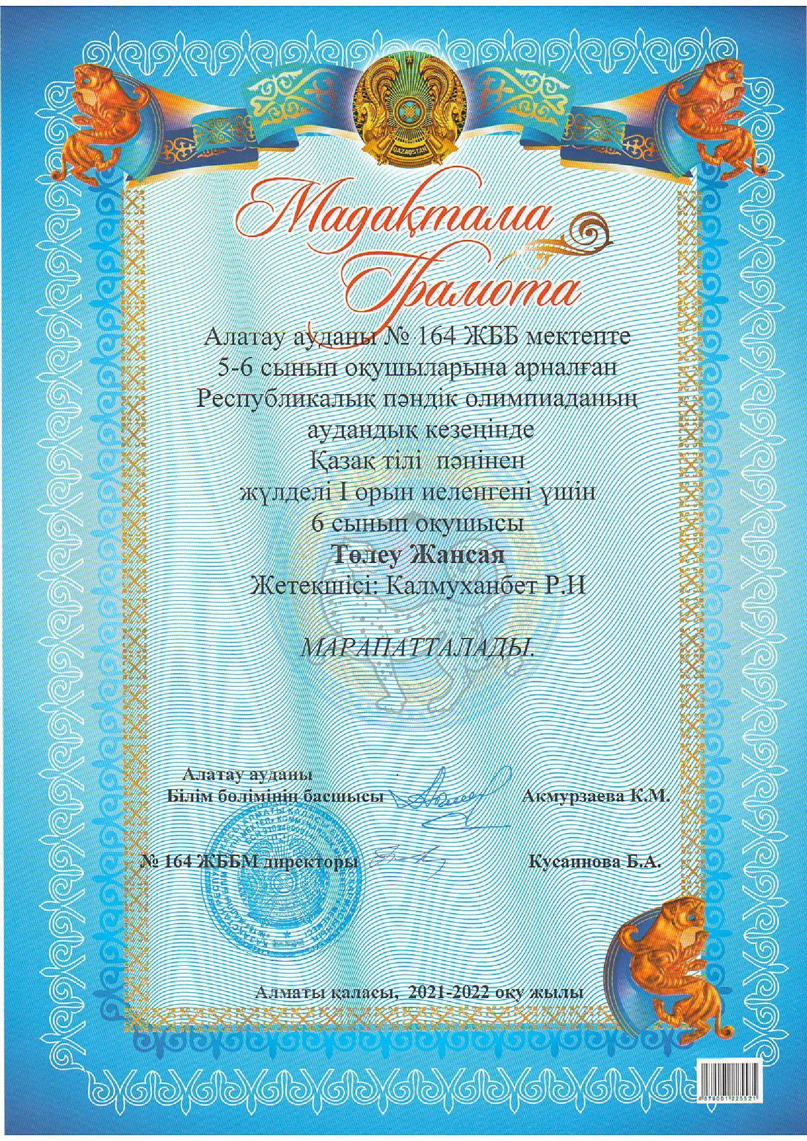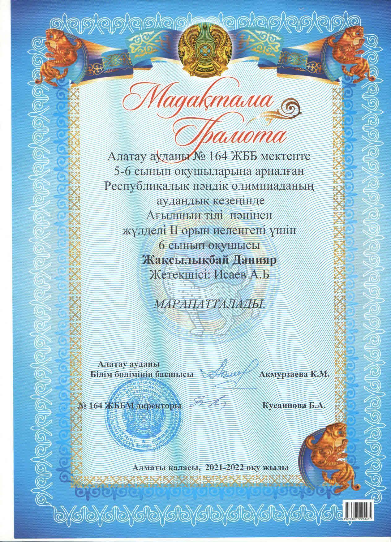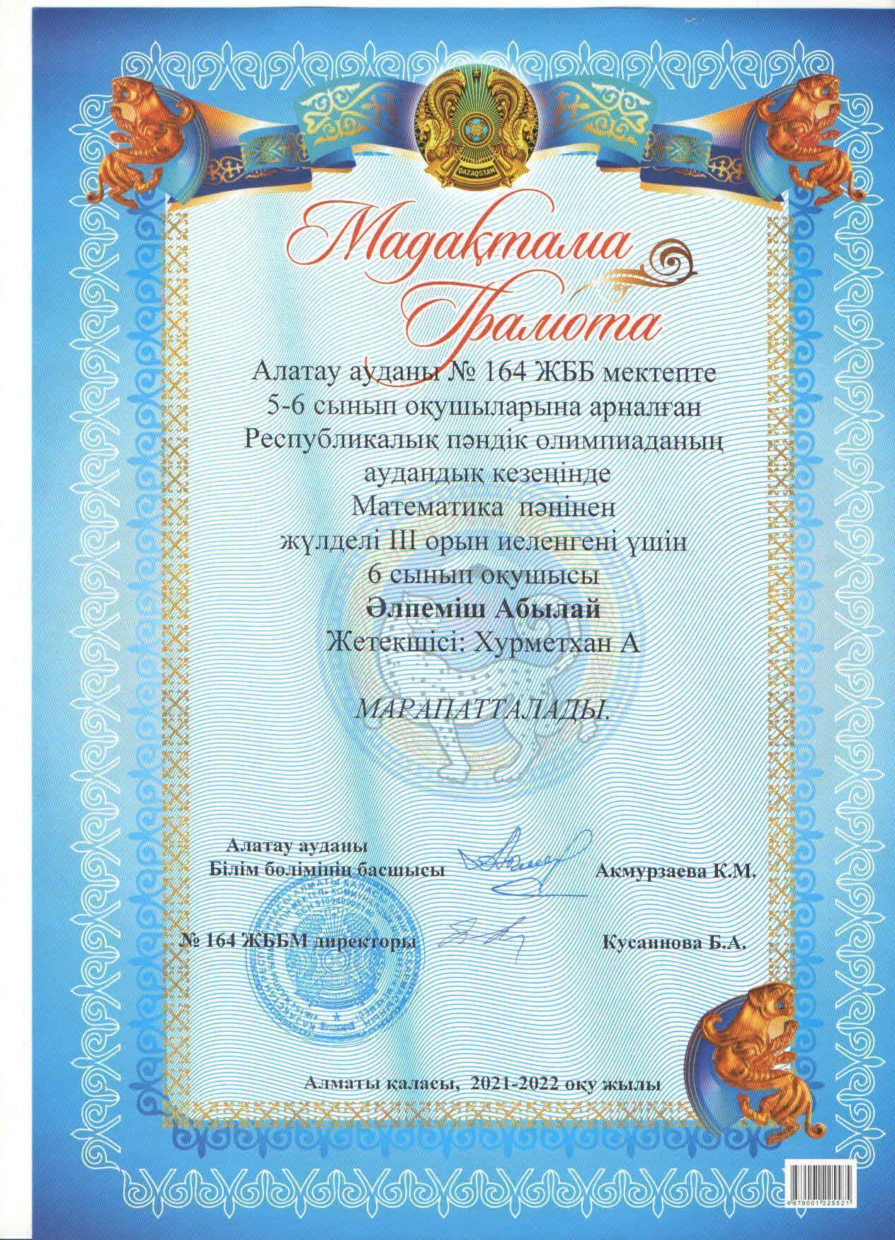 №164 Жалпы білім беретін мектеп » Ақпарат » 5-6 сынып оқушыларына арналған Республикалық пәндік олимпиаданың аудандық кезеңінің жеңімпаздары - мектебіміздің 5-6 сынып оқушыларын ҚҰТТЫҚТАЙМЫЗ!!!