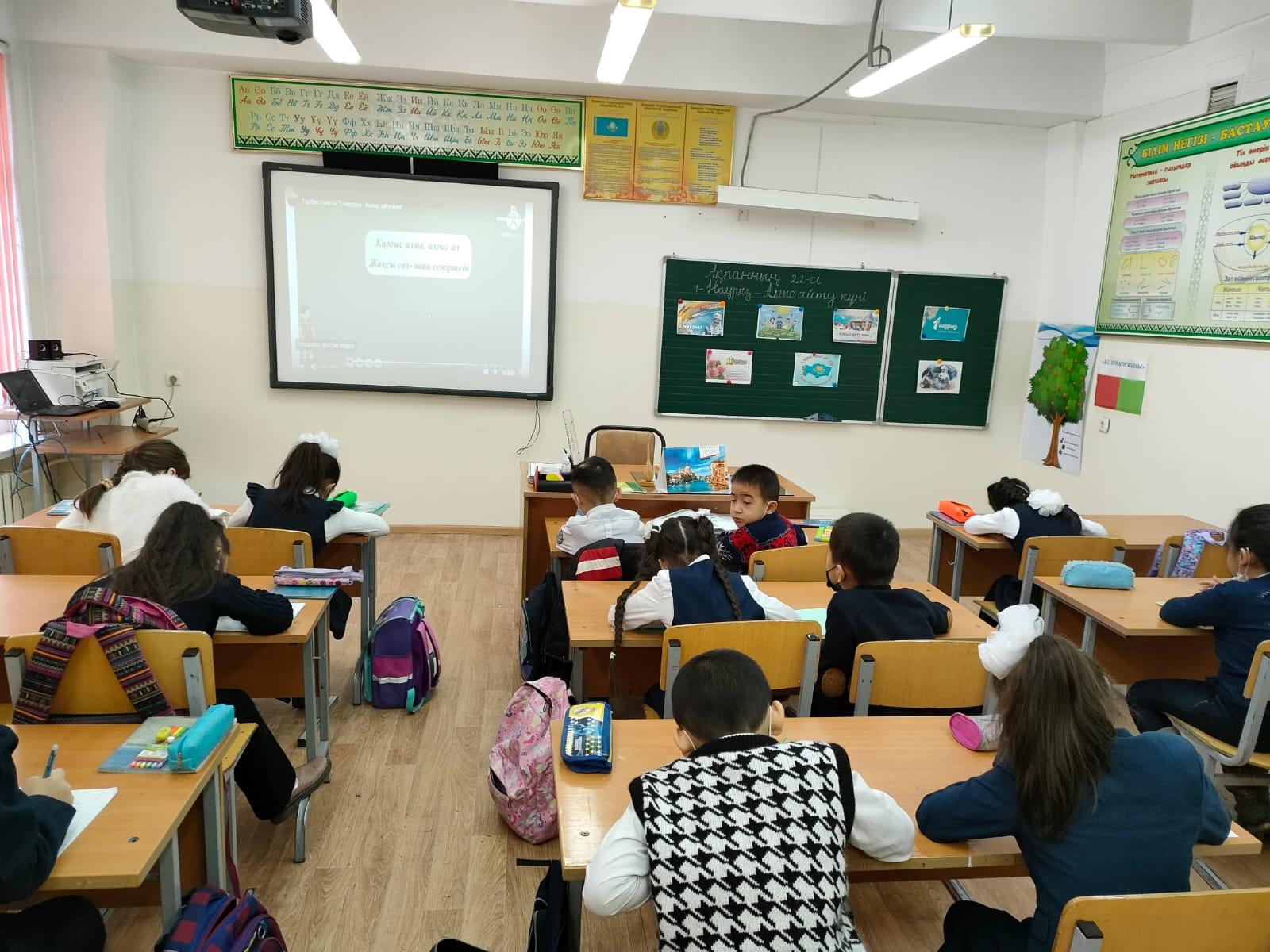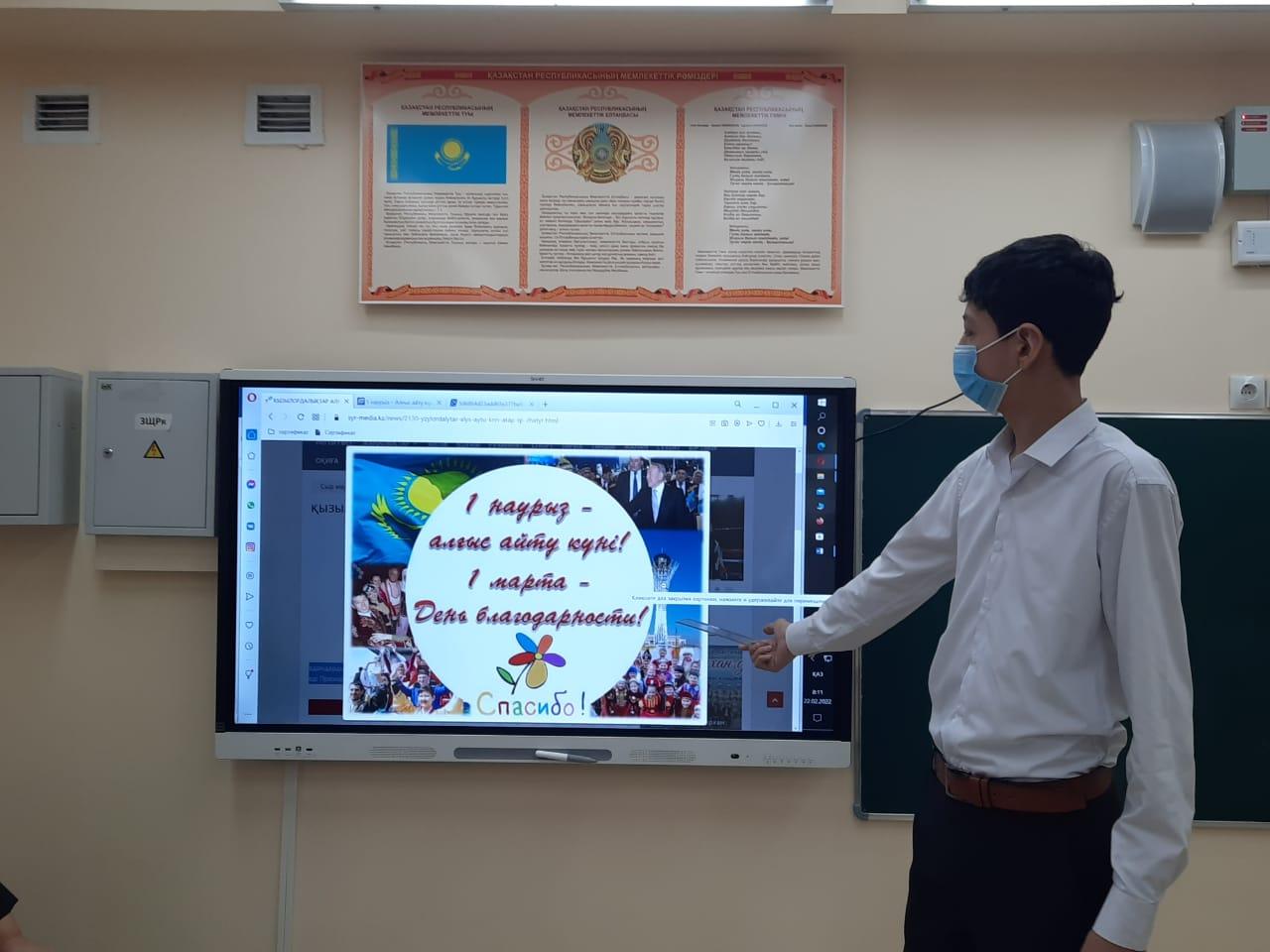 Бүгін мектебімізде биринши ауысымда оқитын оқушыларға 1-наурыз «Алғыс айту күні» тақырыбында тәрбие сағаттары өткізілді. Мақсаты: Оқушылардың «сыйластық» құндылықтары туралы түсініктерін кеңейту.