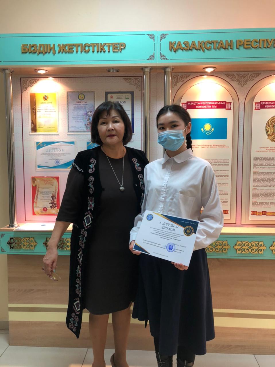 9-11 сыныптар арасында өткен Республикалық пәндік олимпиаданың аудандық кезеңіне математика пәнінен қатысып, жүлделі І орынға ие болған 10 "А" сынып оқушысы Сүлейман Аяжан. Жетекшісі математика пәні мұғалімі У.Алиева