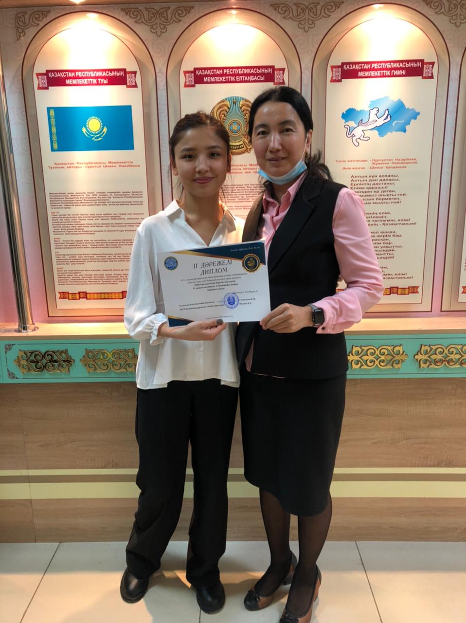 9-11 сыныптар арасында өткен Республикалық пәндік олимпиаданың аудандық кезеңіне өзін-өзі тану пәнінен қатысып, жүлделі ІІ орынға ие болған 11 "Ә" сынып оқушысы Алимжанқызы Амина . Жетекшісі өзін-өзі тану пәні мұғалімі А.Тлеуберди