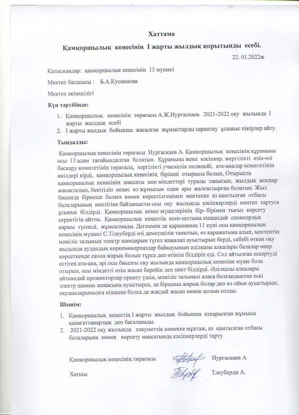 » » "№164жалпы білім беретін мектебі" КММ Қамқоршылық кеңесінің І жарты жылдықтағы есебі