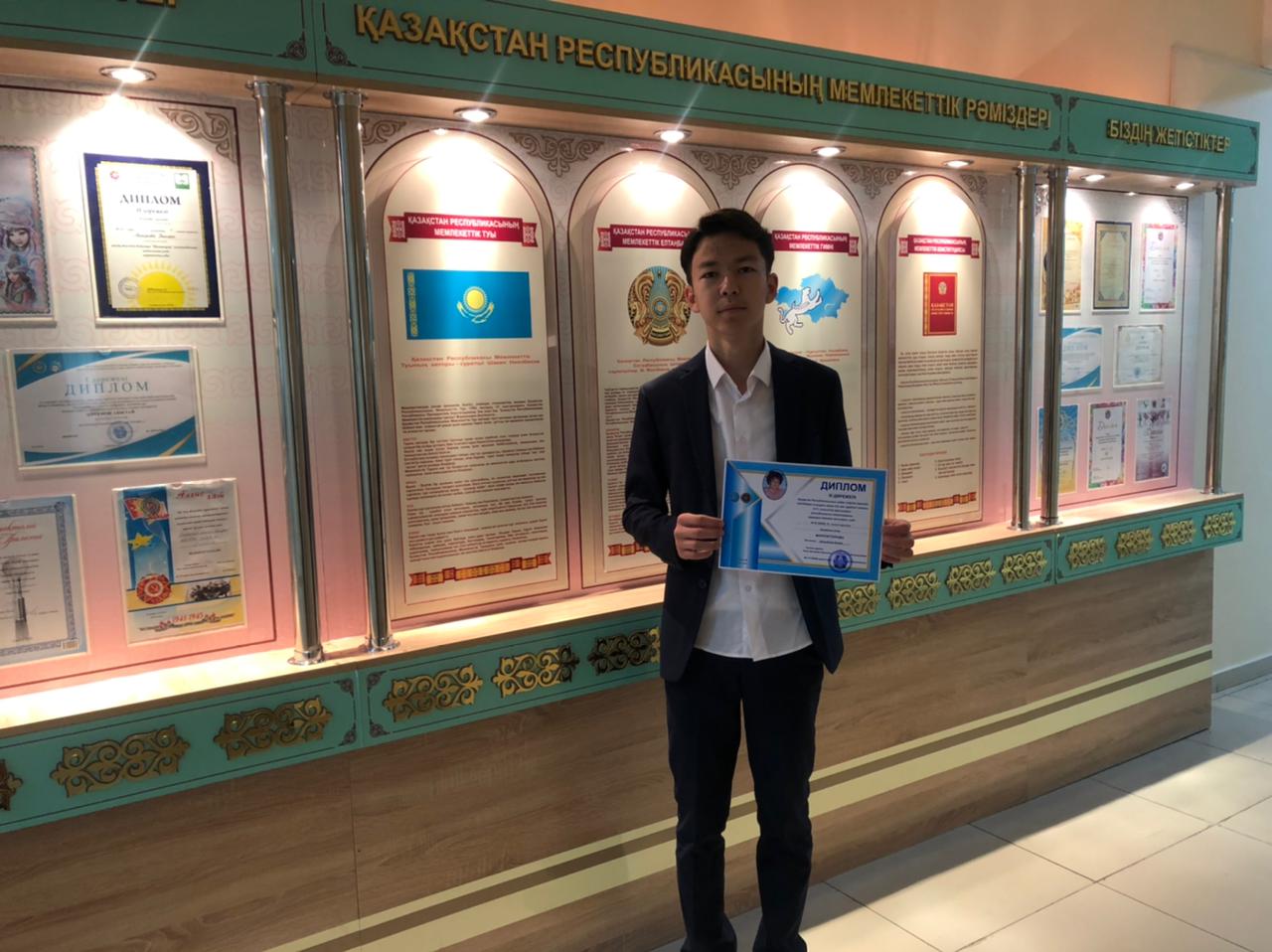 №164 Жалпы білім беретін мектеп » Ақпарат » Қ.Бітібаева атындағы қазақ тілі мен әдебиеті пәнінен 9-11 сыныптар арасындағы республикалық олимпиаданың аудандық кезеңінің ІІІ орын иегері 10 "Ә" сынып оқушысы А.Журабеков, жетекшісі қазақ тілі мен әдебиеті пәні мұғалімі Д.Қайыңбаева