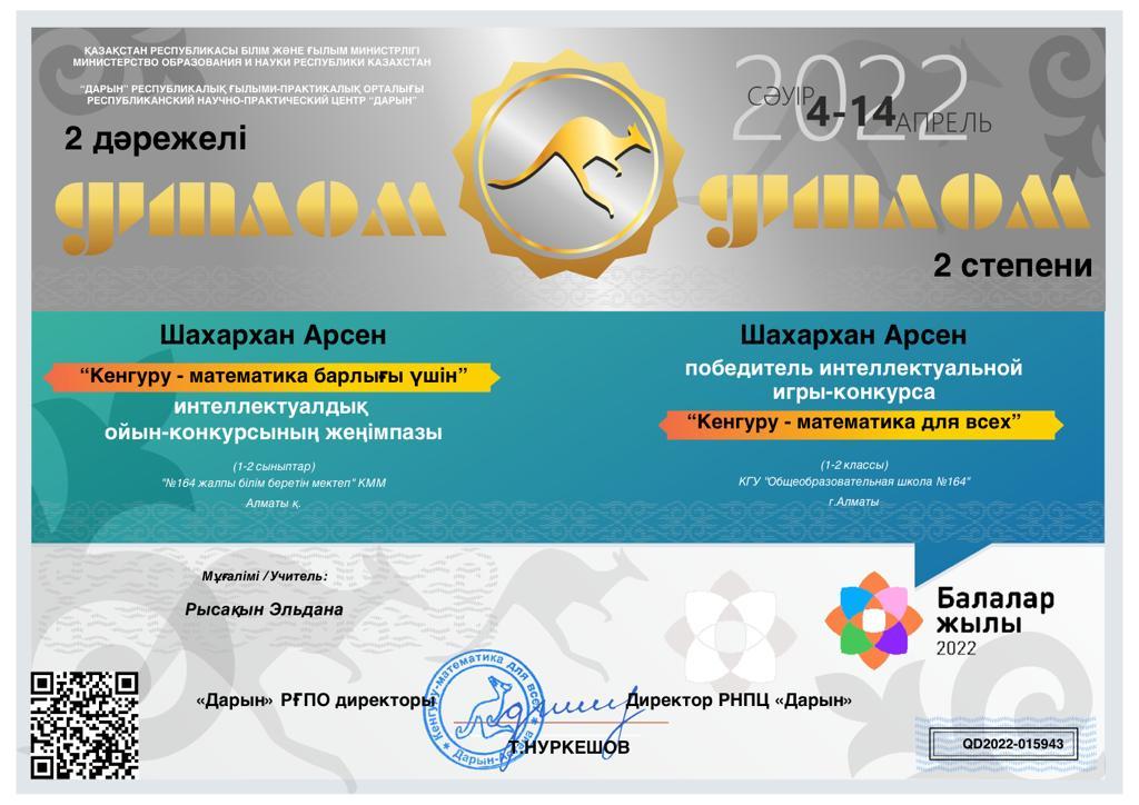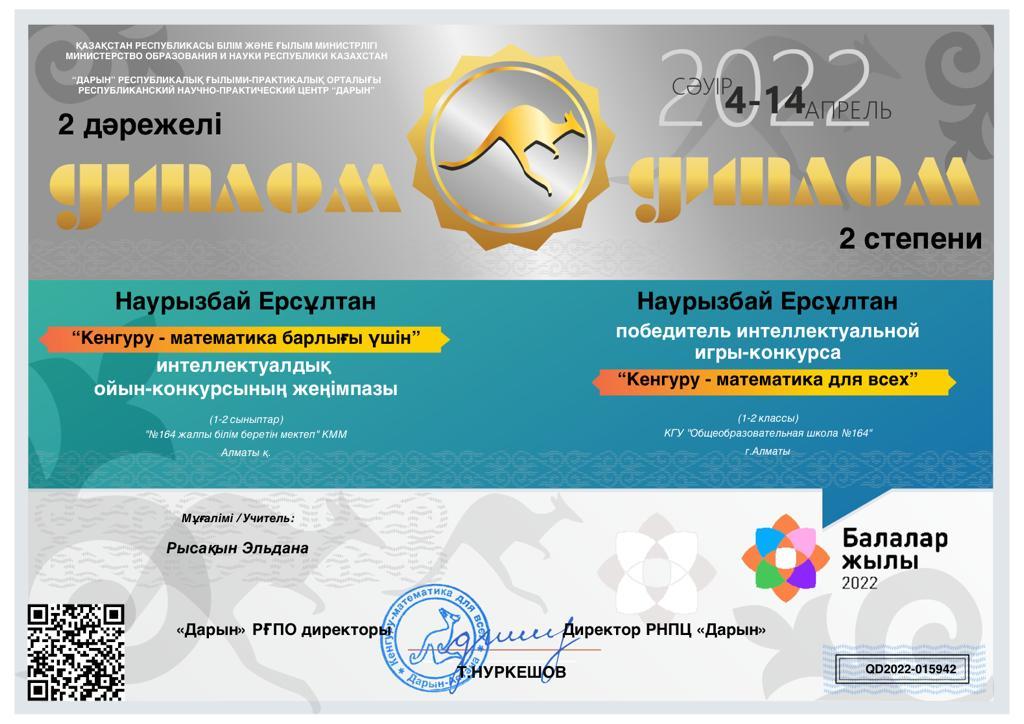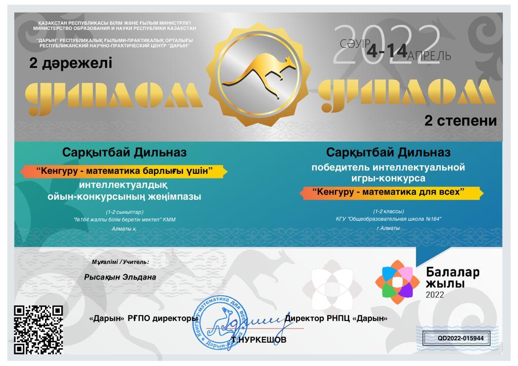 №164 Жалпы білім беретін мектеп » Ақпарат » "КЕНГУРУ-математика барлығы үшін" интеллектуалдық байқауының ІІ орын иегерлері 2"Ә" сынып оқушылары А.Асқар, Ә.Серіктес, Ә.Қуатбай, Н.Кендебай, Е.Наурызбай, Д.Сарқытбай, А.Шахархан, Н.Тлебалдина, С.Санчизова, Ж.Султанова.