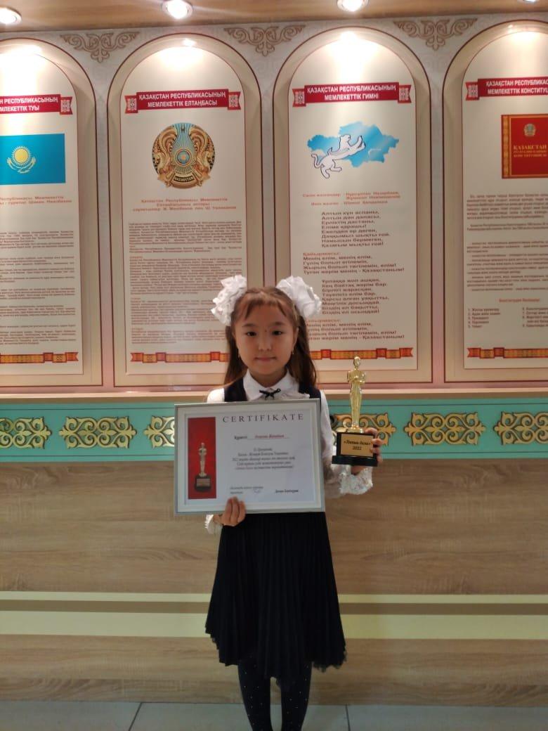 Мектебіміздің 1 «Г» сынып оқушысы Әзмухан Жанайым , Ел Президенті Қасым-Жомарт Кемелұлы Тоқаевтың 2022 жылды «Балалар жылы» деп атауына орай, оқудағы үздік жетістіктері үшін «Алтын бала» мүсіншесімен марапатталды. Құттықтаймыз!👏👏👏
