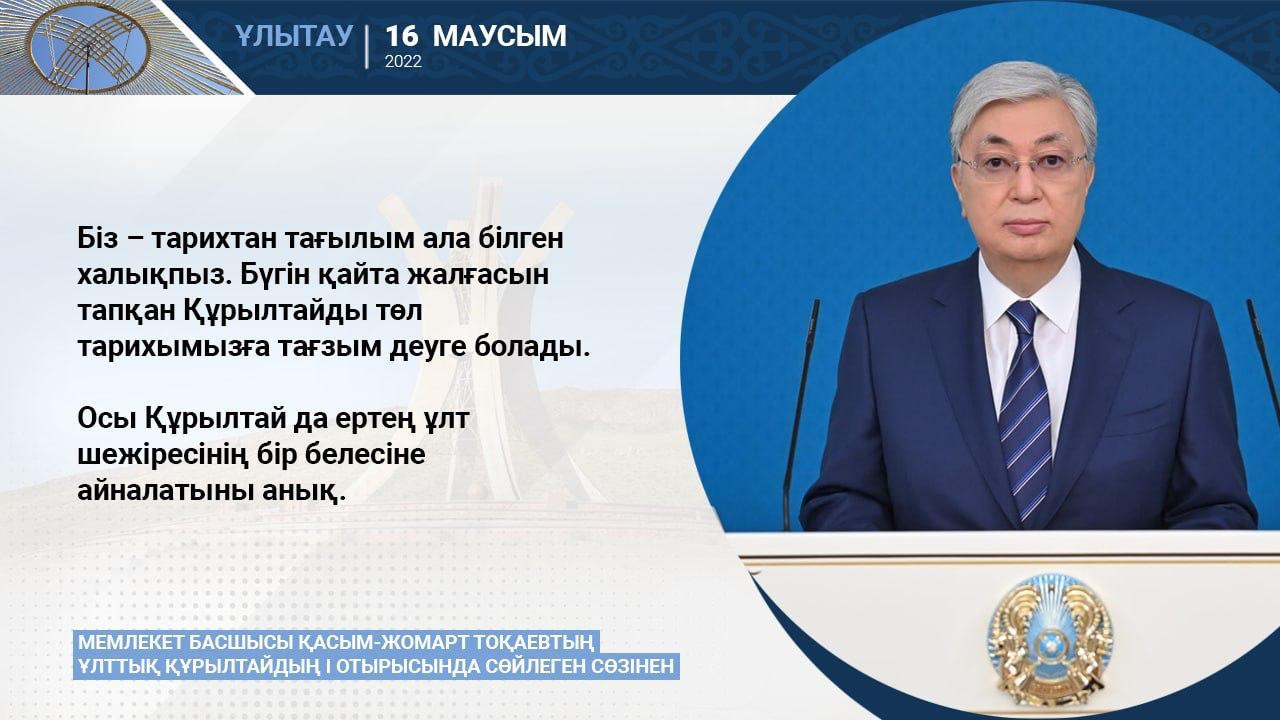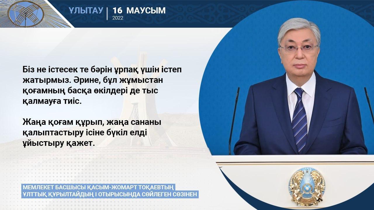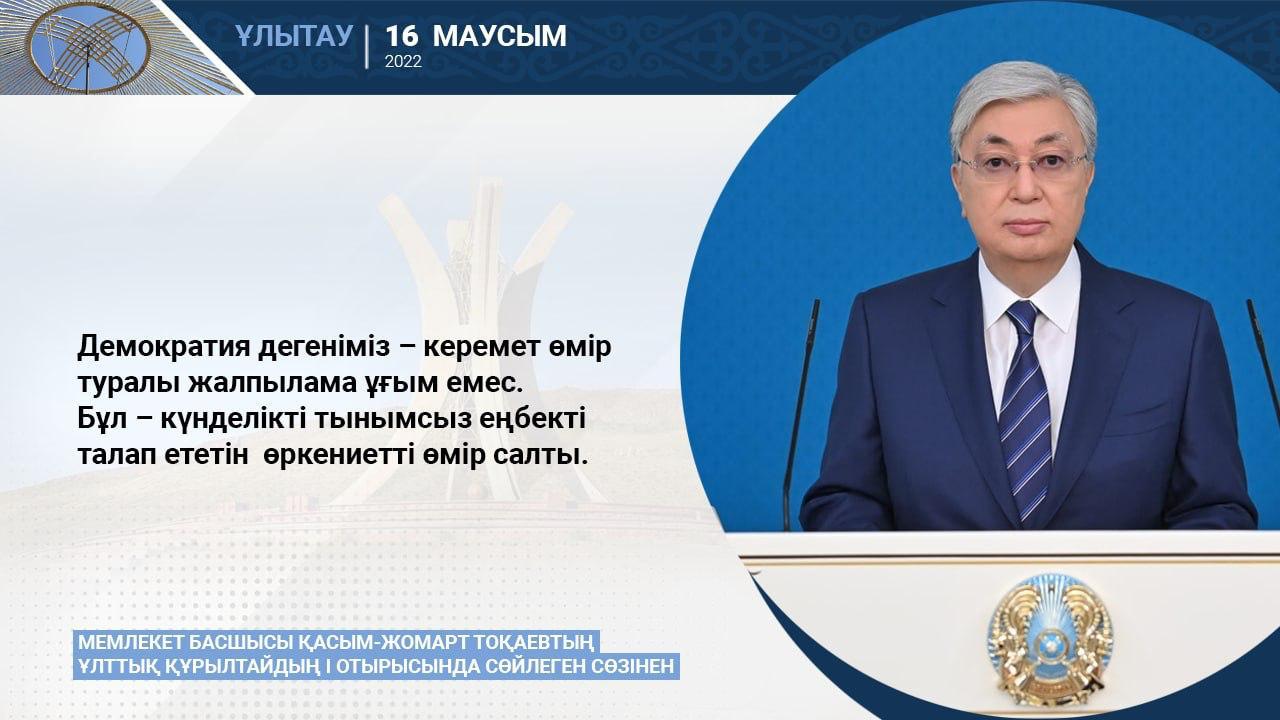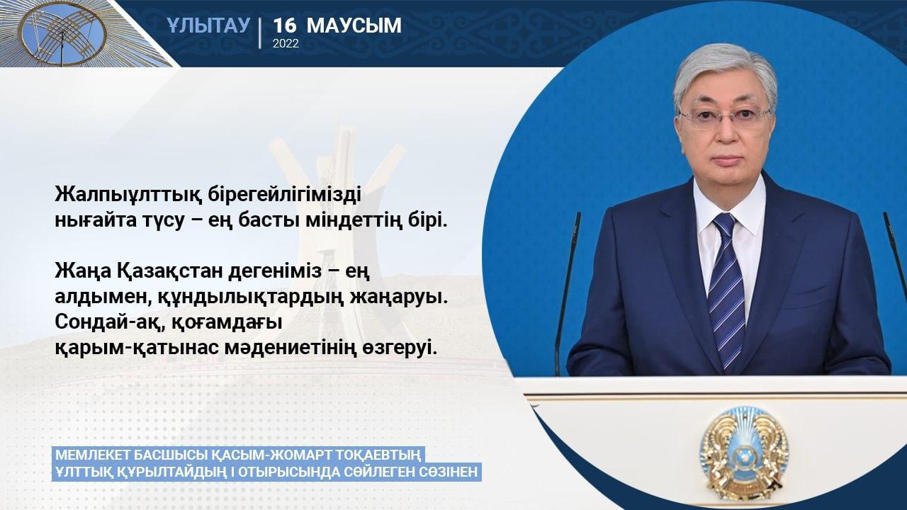 17 маусым 2022 0 1 2 3 4 5 Мемлекет басшысы Қасым-Жомарт Тоқаевтың ұлттық құрылтайдың I отырысында сөйлеген сөзінен Осы беттің QR-коды:QR-код этой страницы: