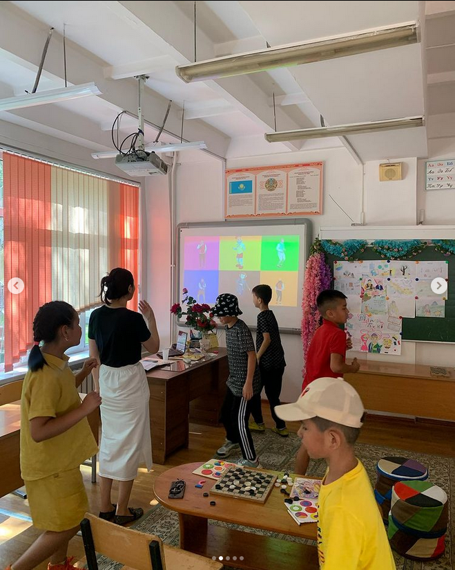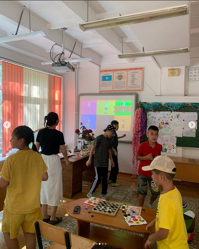 Мектеп жанындағы «Күншуақ» лагерьінің оқушыларымен «Hello» тақырыбында ағылшын тілінен білімдерін жетілдірді. Мақсаты: Балаларға амандасу және өзін-өзі таныстыруға үйрету. «Шет тілі», «ағылшын тілі» ұғымдарын қалыптастыру.