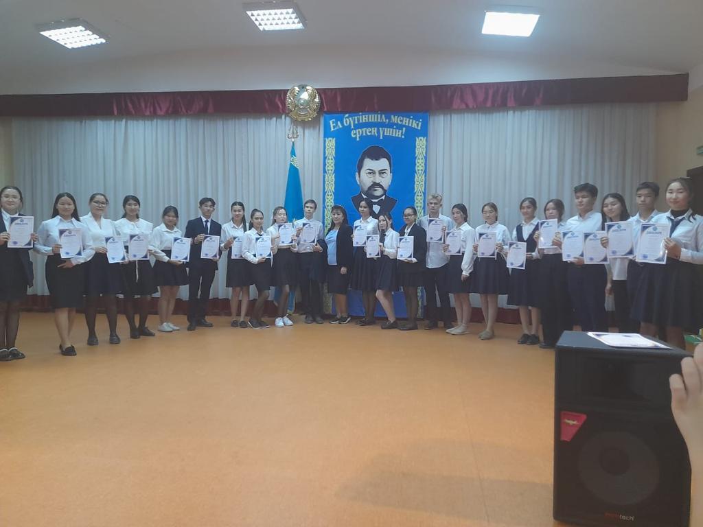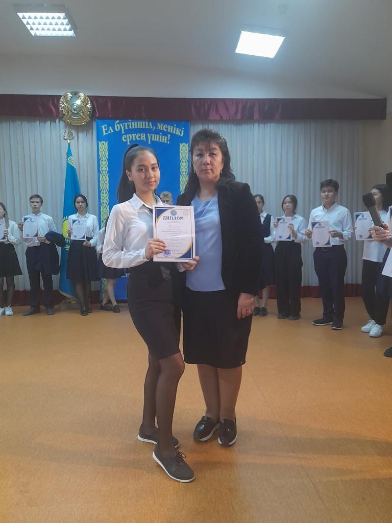 Аудандық "Менің шағын Отаным" V республикалық интеллектуалдық конкурсына "Менің кішкентай Отанымның болашағы" макет номинациясы бойынша қатысып, ІІІ орын алған 10 "А"сынып оқушысы А.Кабирова жетекшісі тарих пәні мұғалімі Д.Кузембаева.