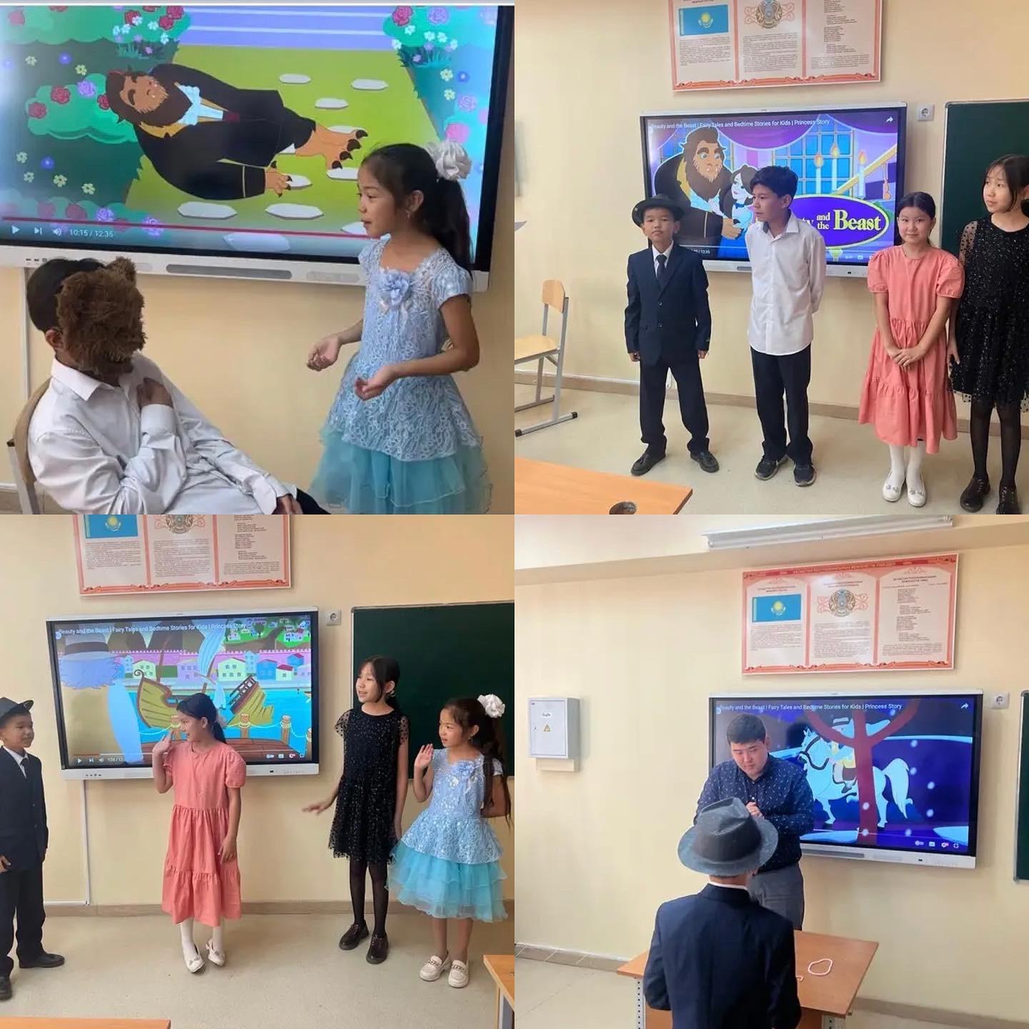«Өзге тілдің бәрін біл, өз тіліңді құрметте» атты тілдер мерекесіне арналған апталықтың жоспары бойынша 5-6 сынып оқушыларымен «The main heroes Fairytales» тақырыбында ағылшын тілі пәні мұғалімдері А.Аққұлы, А.Исаев сыныптан тыс іс-шара өткізді.