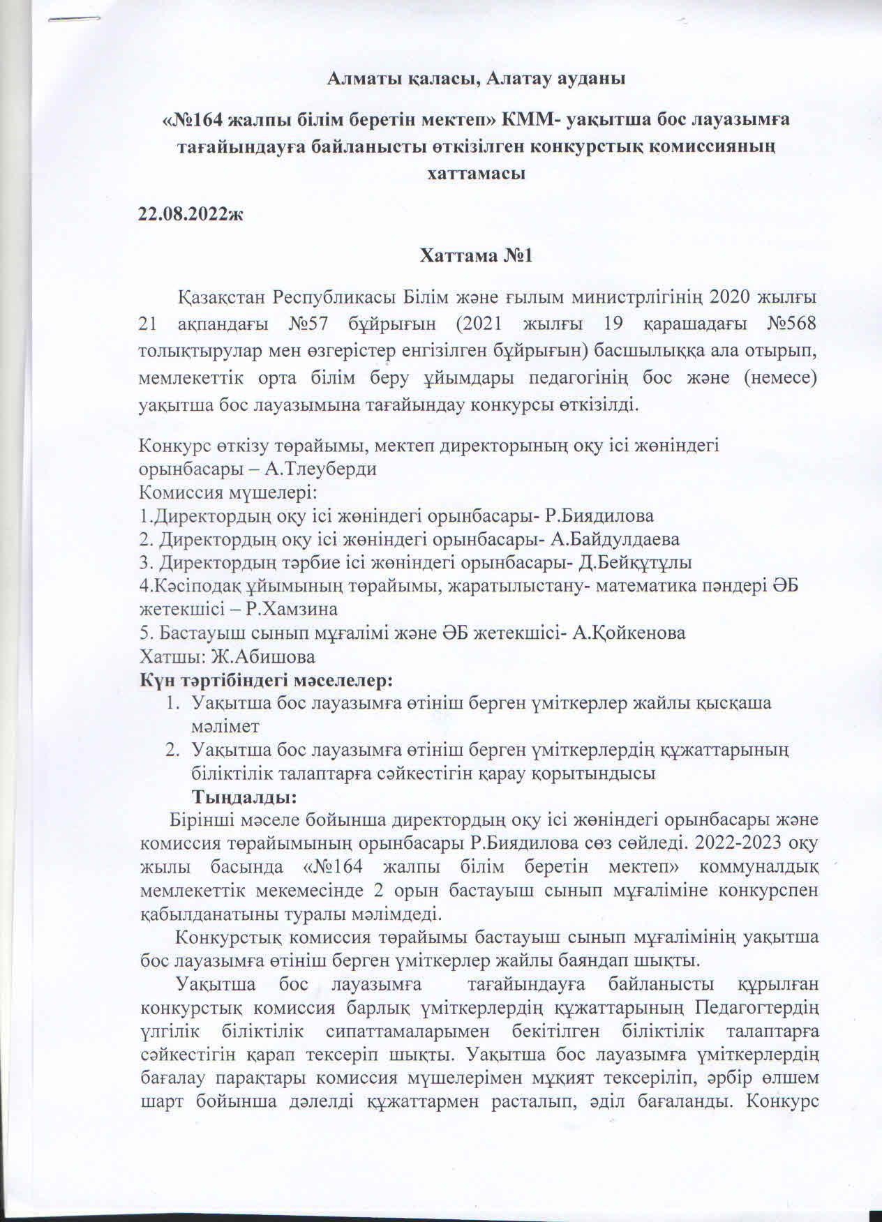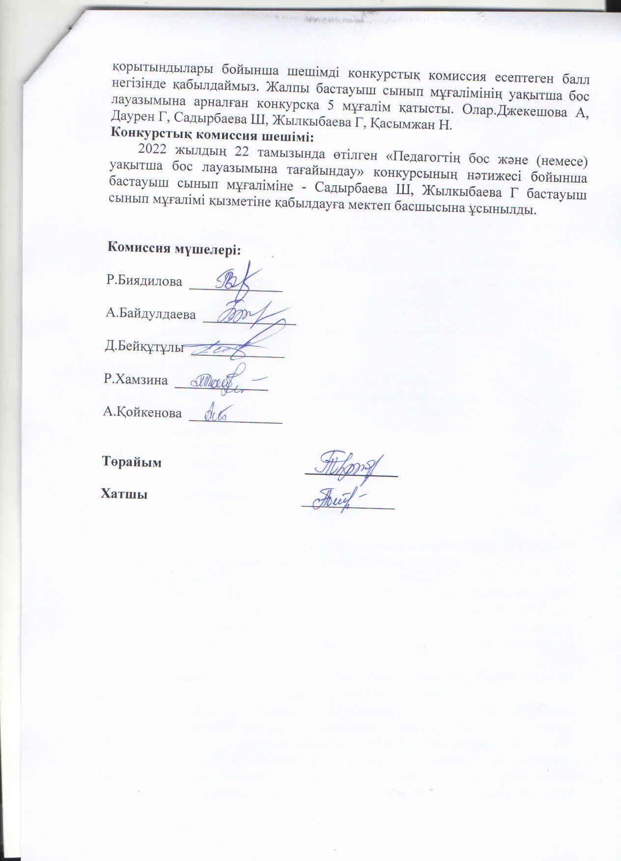 » Конкурс комиссиясының хаттамасы