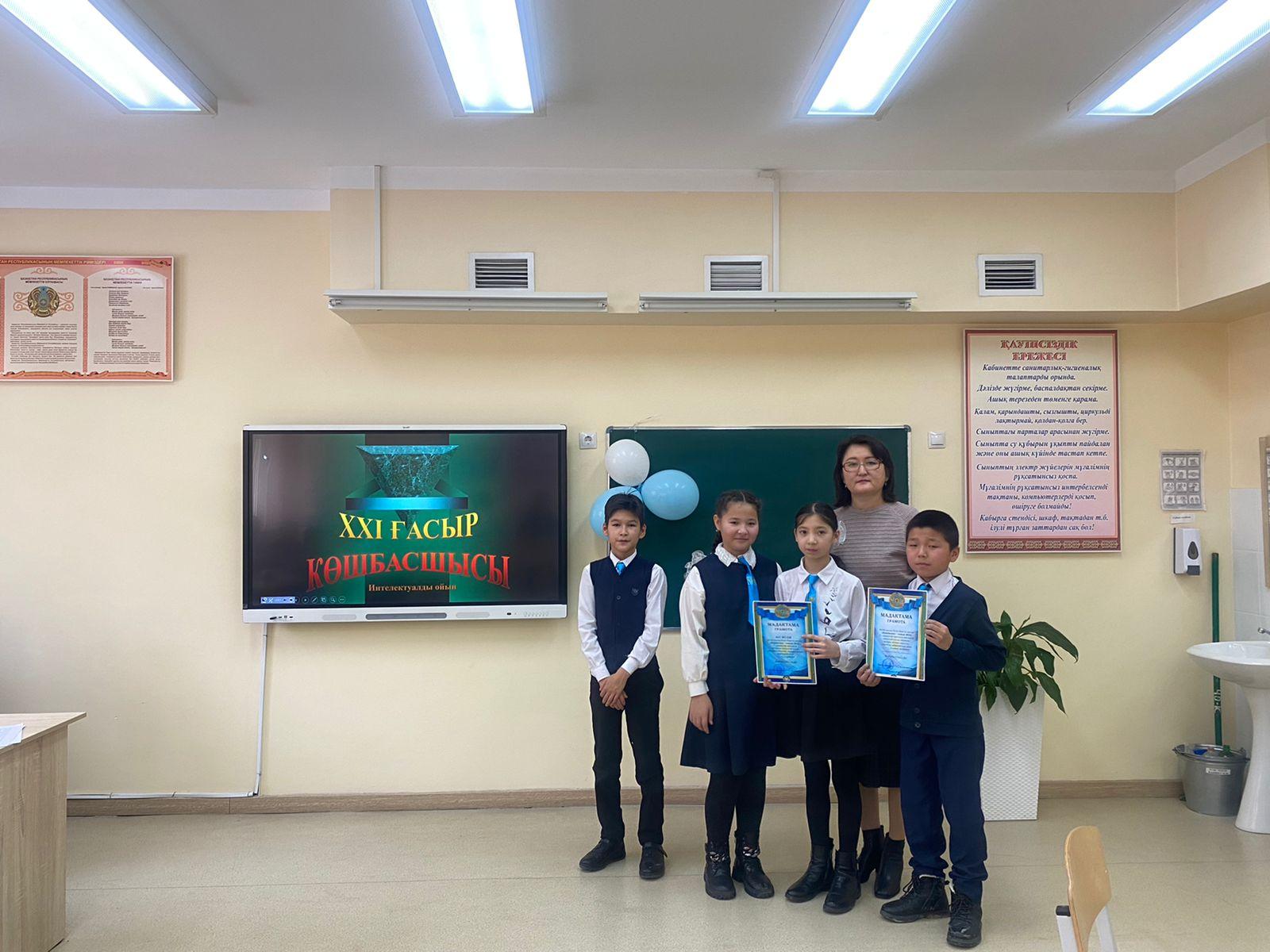 Мектебімізде 5- сынып оқушылар арасында «Көшбасшы- сынып 2022» интеллектуалды ойыны өтілді. Оқушылар өз біліктіліктерін жоғарғы деңгейде көрсетті. Интеллектуалды ойын 3 кезеңнен тұрды. 5 «А» сыныбына келесі кезеңге жолдама алды.