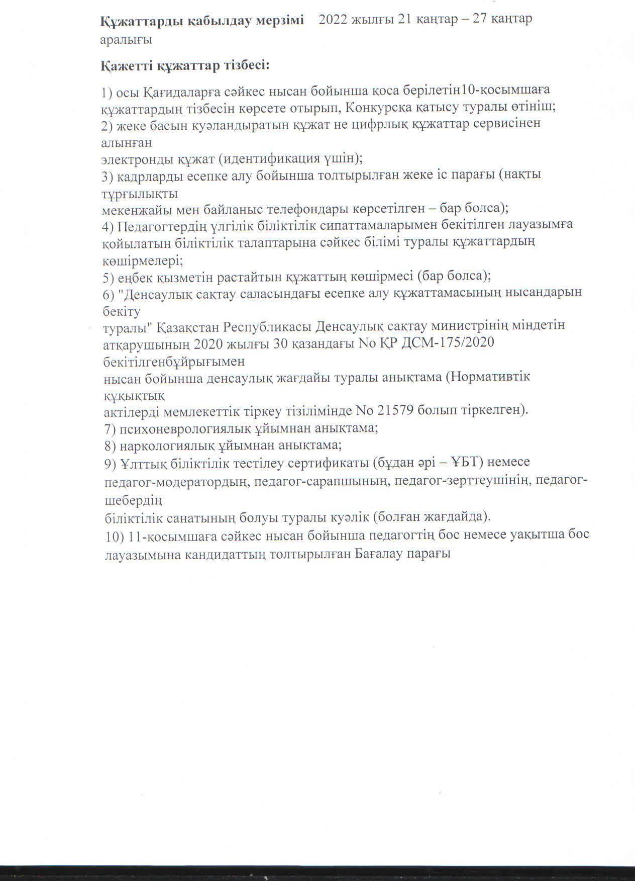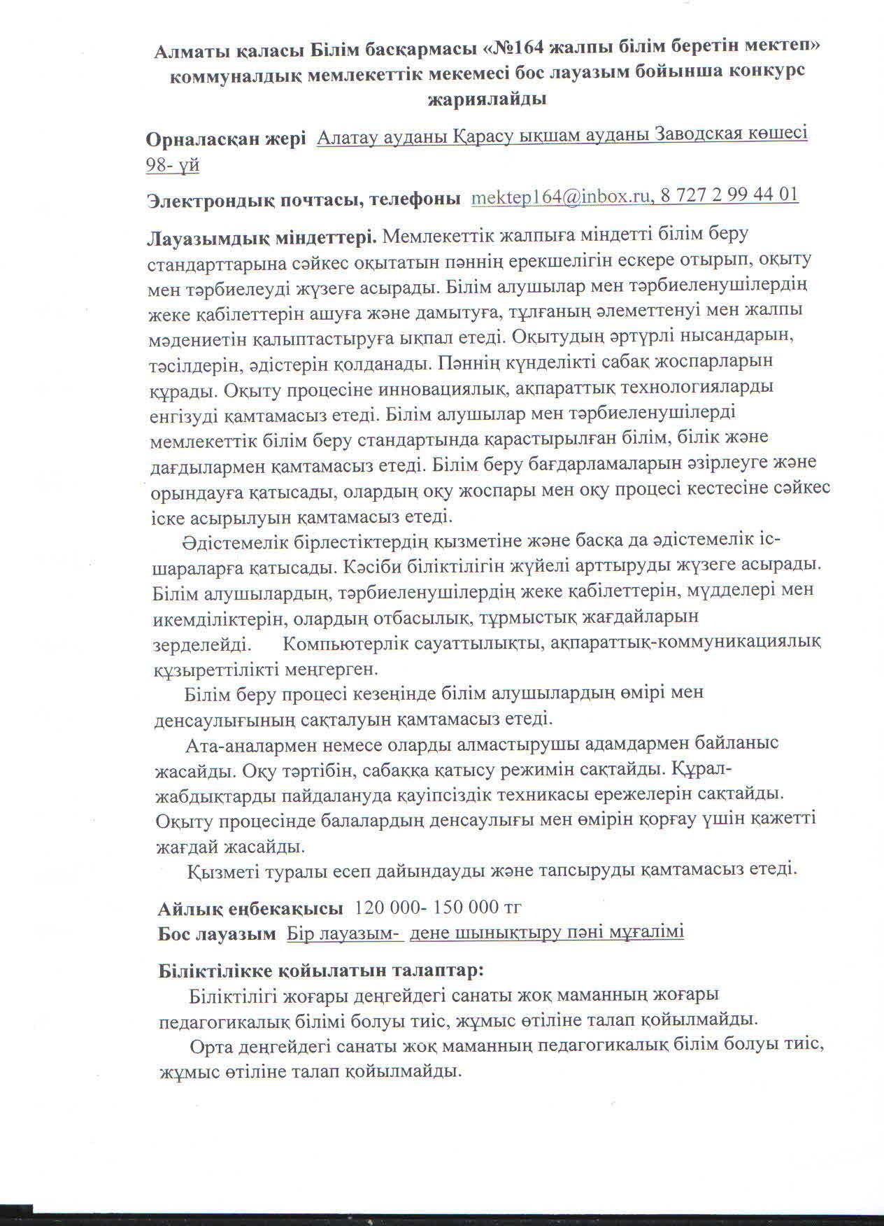 21 қаңтар 2022 0 1 2 3 4 5 Хабарландыру: Дене шынықтыру пәні мұғалімінің бос лауазымына конкурс Осы беттің QR-коды:QR-код этой страницы: