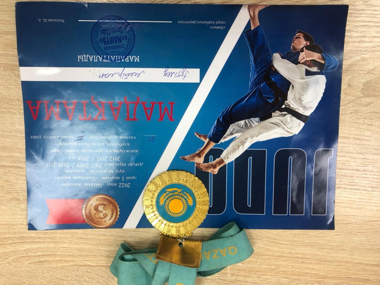 "Балалар жылы" қарсаңында жасөспірімдер арасында "Намыс" спорт клубы ұйымдастырған ашық біріншілігінде дзюдодан ІІІ орын иегері болған 9 "Б"сынып оқушысы М.Ізтілеу.