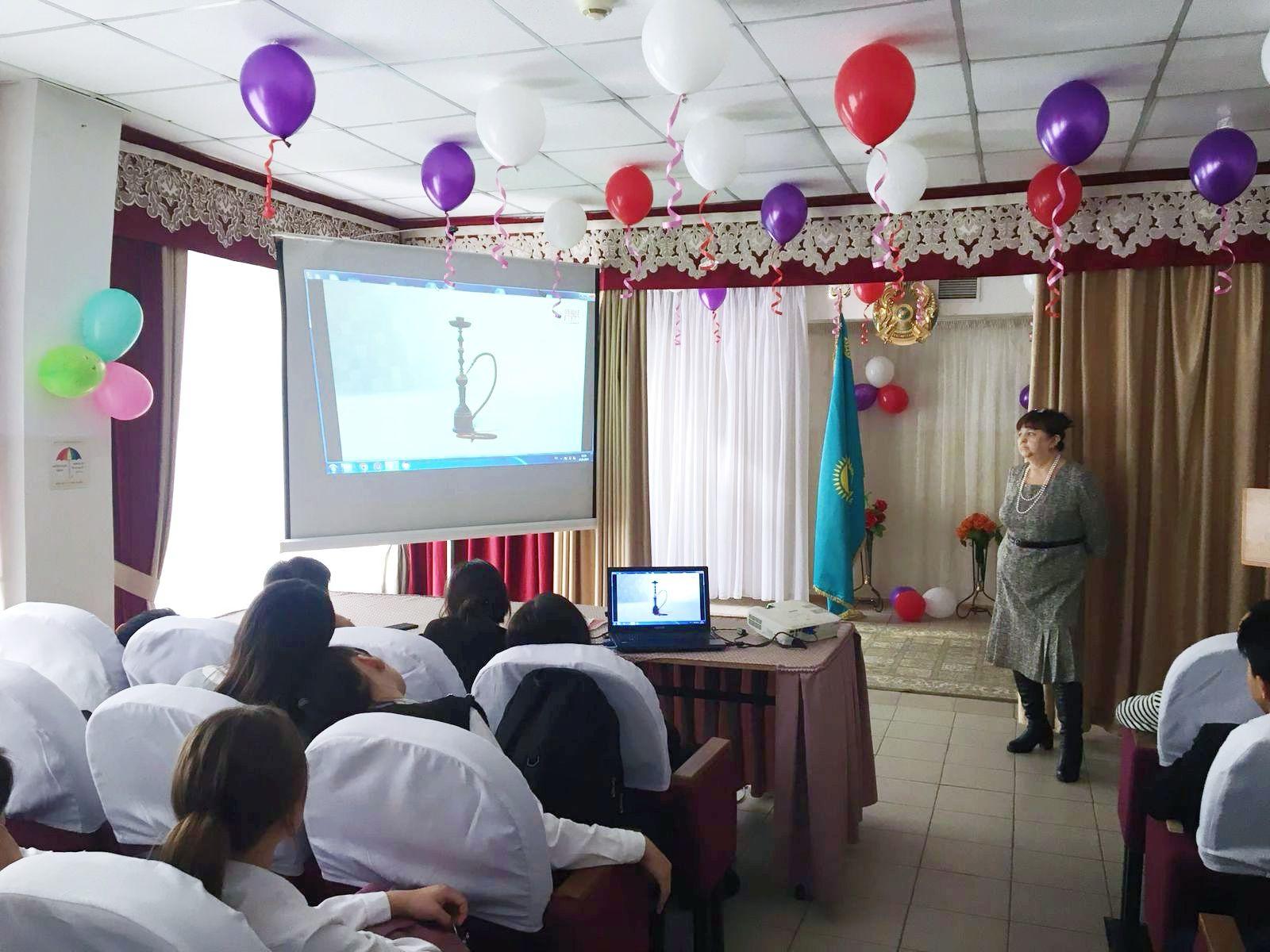 Бүгін мектебімізге психикалық сауықтыру орталығынан Кенесбекова Салия Кенесбековна келіп 8-11 сынып оқушыларына "Электронды темекі және оның ағзаға зияны" тақырыбында лекция оқып, оқушыларға кеңестер беріп, оқушылардың сауалына жауап берді.