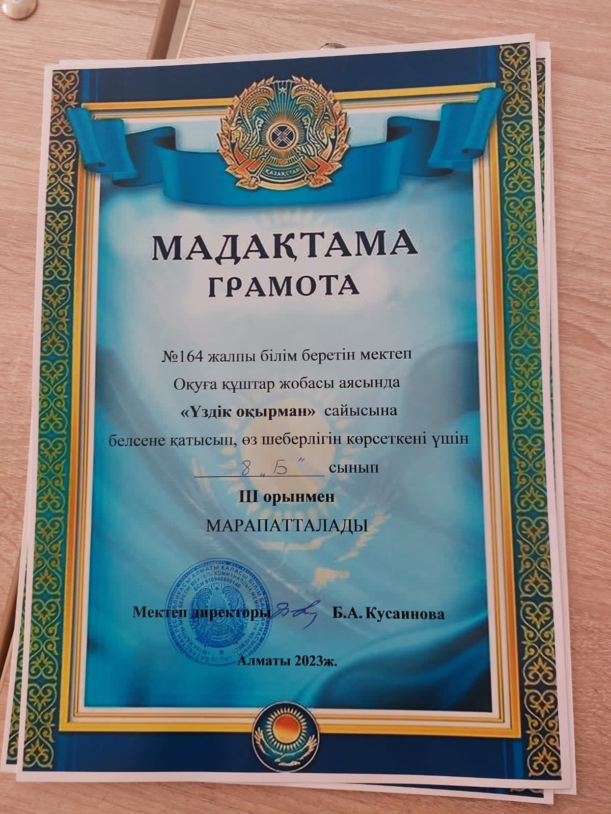 "ОҚУҒА ҚҰШТАР МЕКТЕП" №164 жалпы білім беретін мектепте 8-сыныптар арасында «Оқуға құштар мектеп» жобасы аясында «Үздік оқырман» атты сайыс өткізілді.