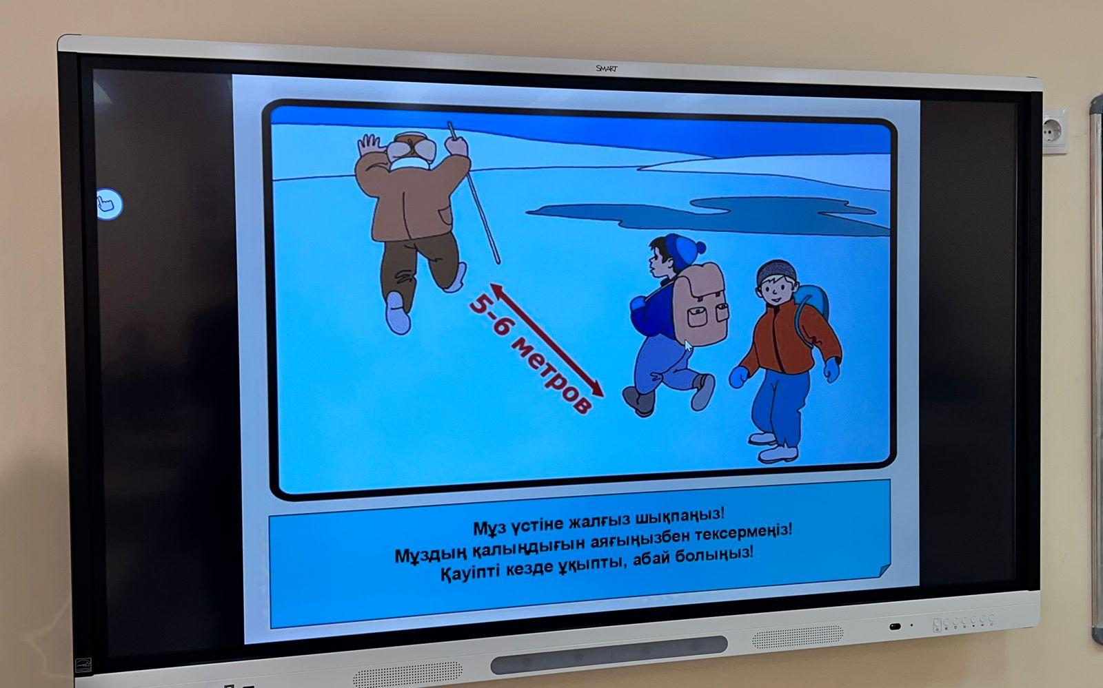 Мектебіміздің оқушыларына төтенше жағдайлардың алдын алуға байланысты "Су айдындарында", «Мұздағы қауіпсіздік»,"Қысқы кезеңде су айдындарындағы қауіпсіздік қағидалары" тақырыптарында сынып сағаттары өткізілді.