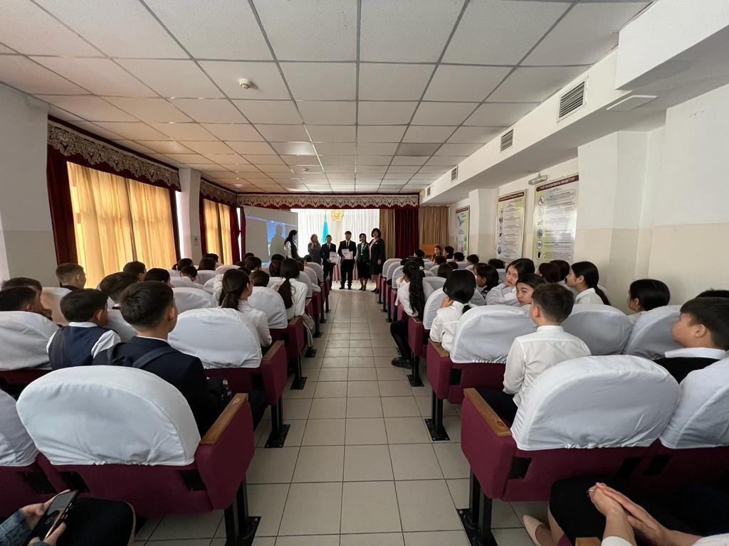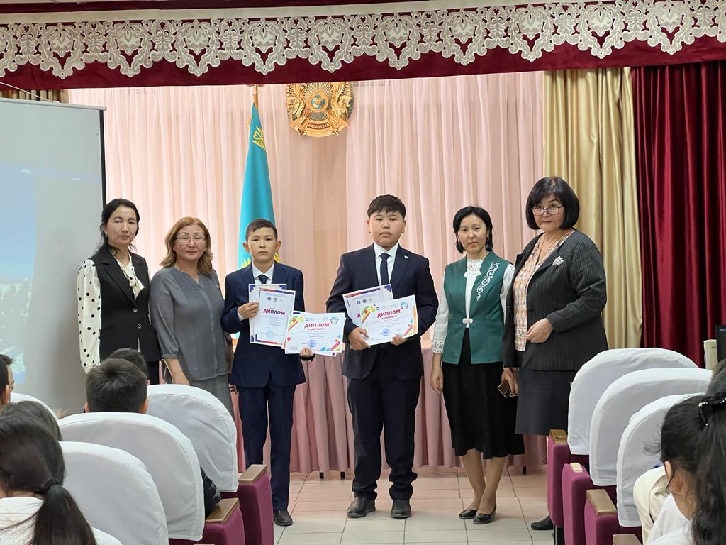 2-7 сынып оқушыларының зерттеу жұмыстары мен шығармашылық жобаларының "ЗЕРДЕ" республикалық конкурсының РЕСПУБЛИКАЛЫҚ кезеңінің жеңімпаздары 7 "А" сынып оқушылары Ж.Есенгелдіұлы мен Е.Сарқытбайларды оқу лездемесінде құттықтау сәті