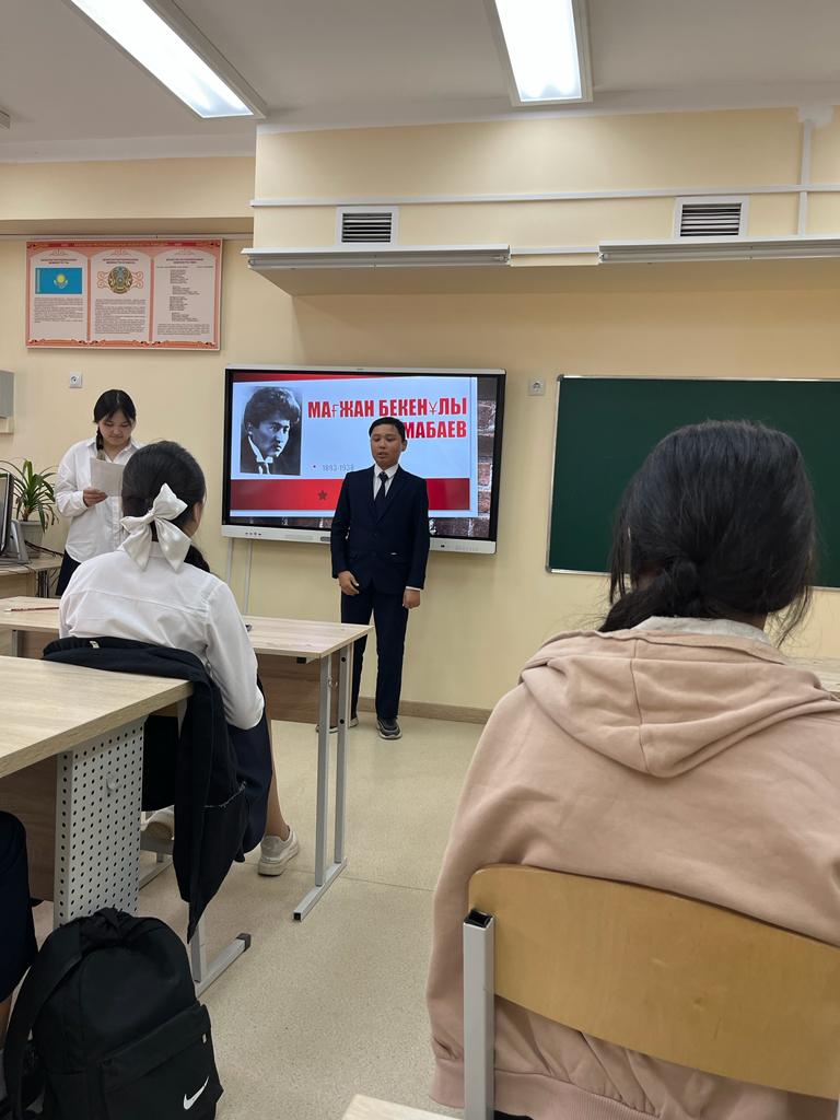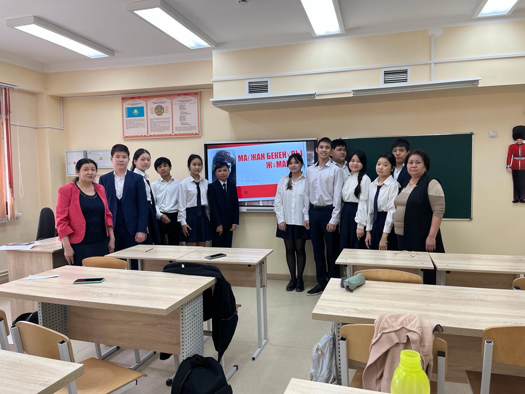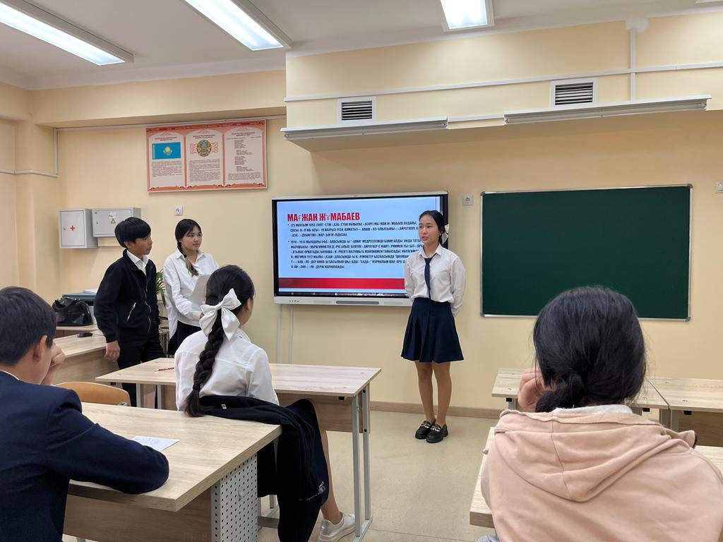 17.04.2023ж. күні мектебімізде кітапханашы Г.Н.Какенова мен 8 "Б" сынып жетекшісі Г.Мустафина сынып оқушыларымен Мағжан Жұмабаевтың 130 жылдығына орай "Мен жастарға сенемін" атты сыныптан тыс іс-шара өткізді.