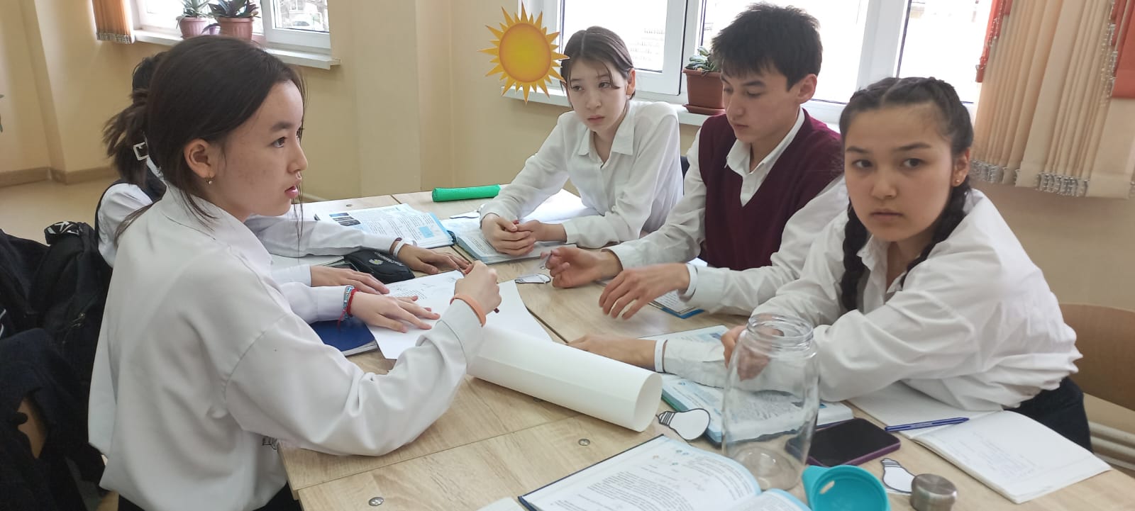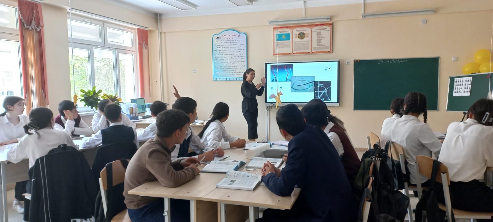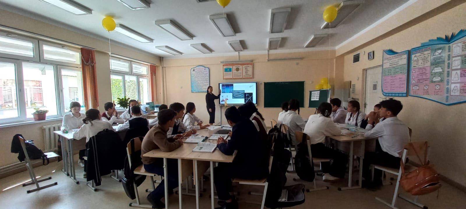 "Әлемді бейнелеген нақты ғылымдар" тақырыбындағы математика, информатика және физика пәндері онкүндігінің жоспары бойынша физика пәні мұғалімі М.Ырыскелді 8"Ә"сыныбымен "Жарықтың сынуы, жарықтың сыну заңы" тақырыбында ашық сабақ өткізді.