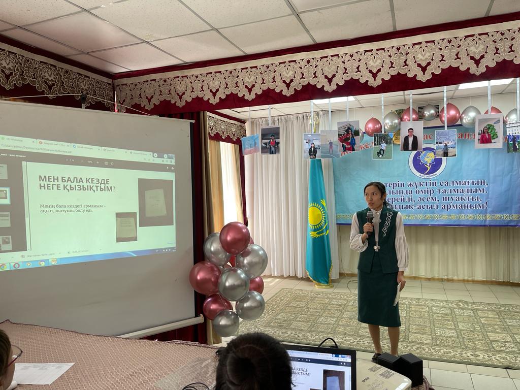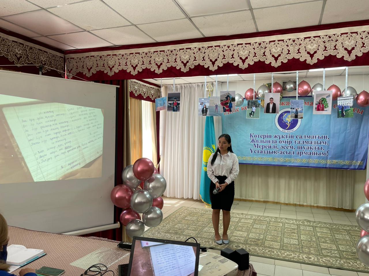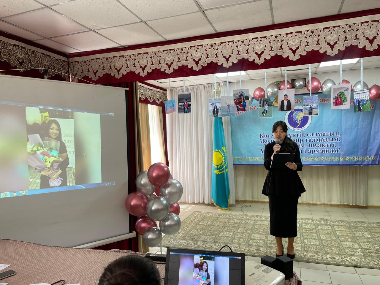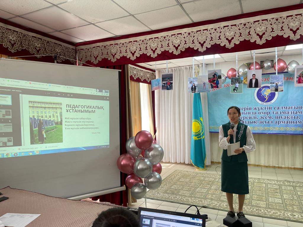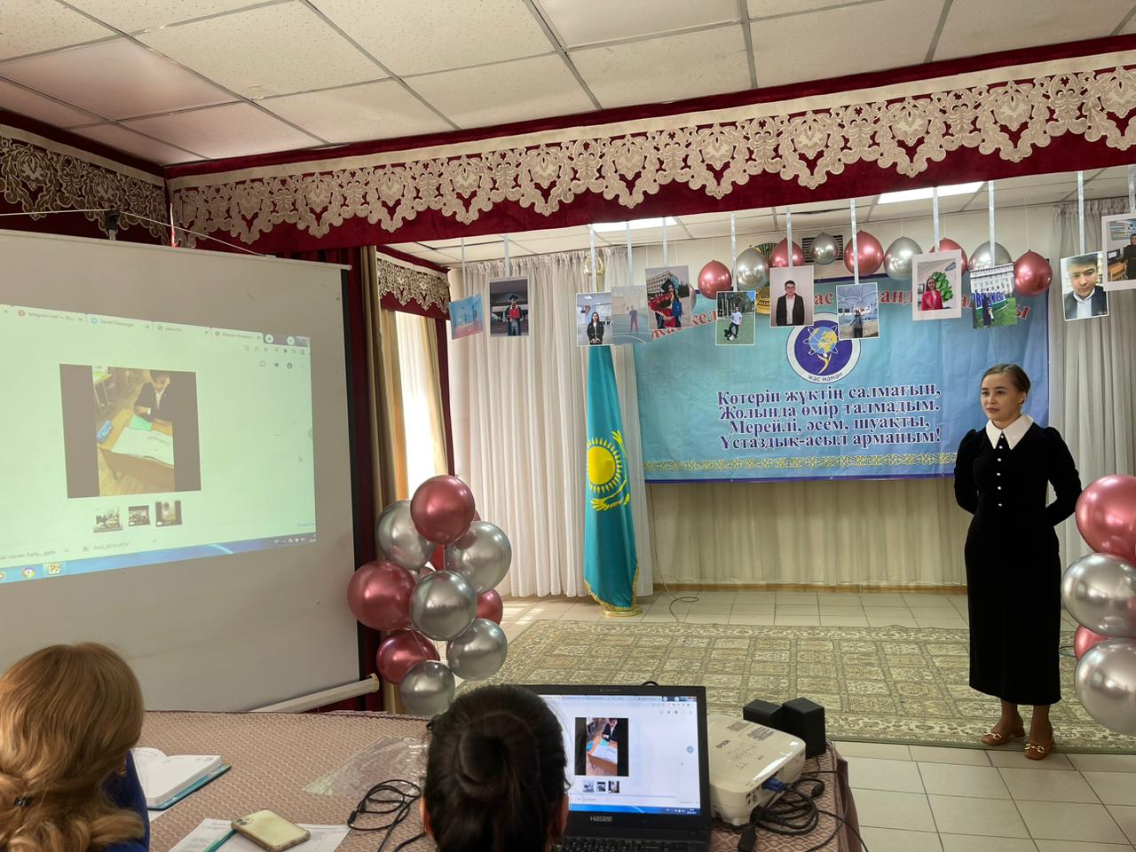 "Жас келсе, іске " атты мектепішілік жас мамандар онкүндігінің салтанатты түрде ашылуы және "Жарқын болашақ иесі- жас маман" тақырыбында өзінің педагогикалық іс-тәжірибесі мен шеберлігін және осы мамандықты таңдауын таныстырды