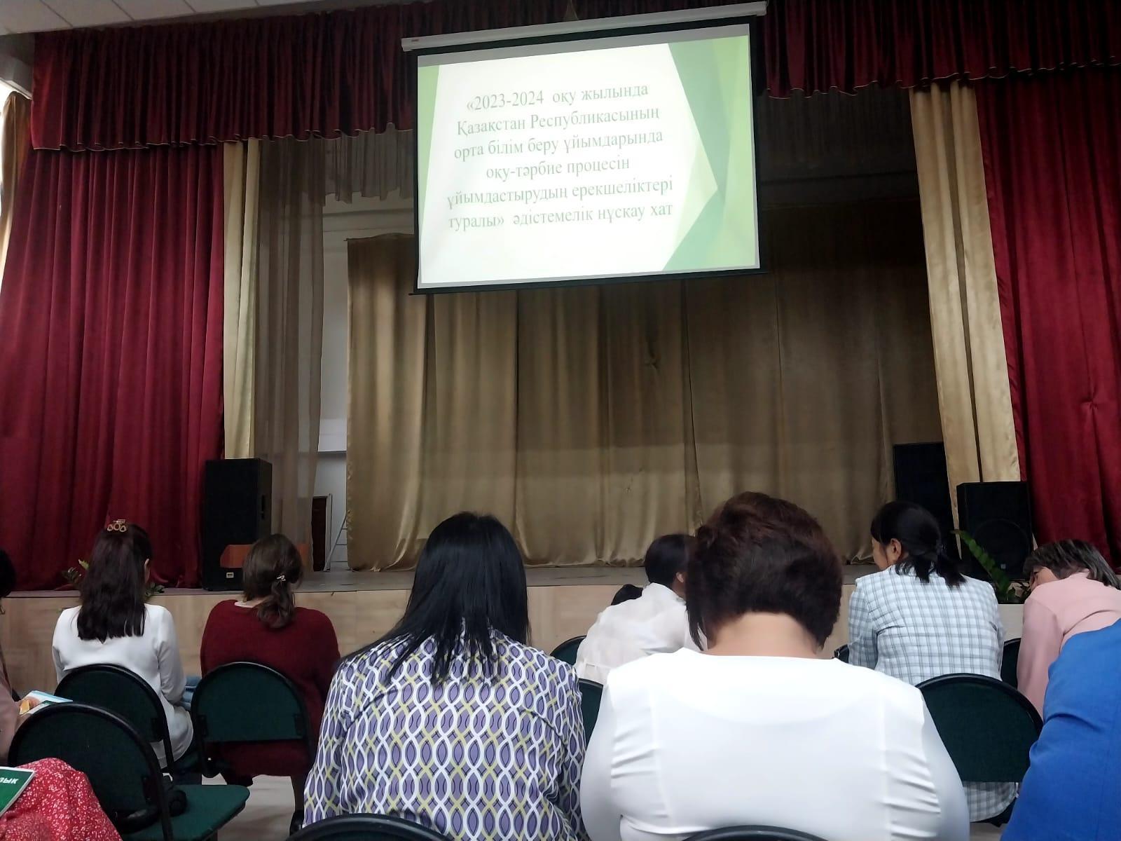 2023-2024 оқу жылында жалпы орта білім беру ұйымдарындағы оқу- тәрбие процесінің ерекшеліктеріне арналған пәндік семинарларға мектебіміздің пән мұғалімдері қатысуда