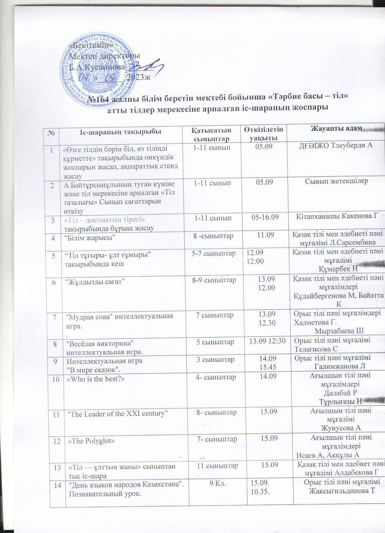05 қыркүйек 2023 0 1 2 3 4 5 "Тәрбие басы-тіл" атты тілдер мерекесіне арналған онкүндіктің іс-шаралар жоспары Осы беттің QR-коды:QR-код этой страницы: