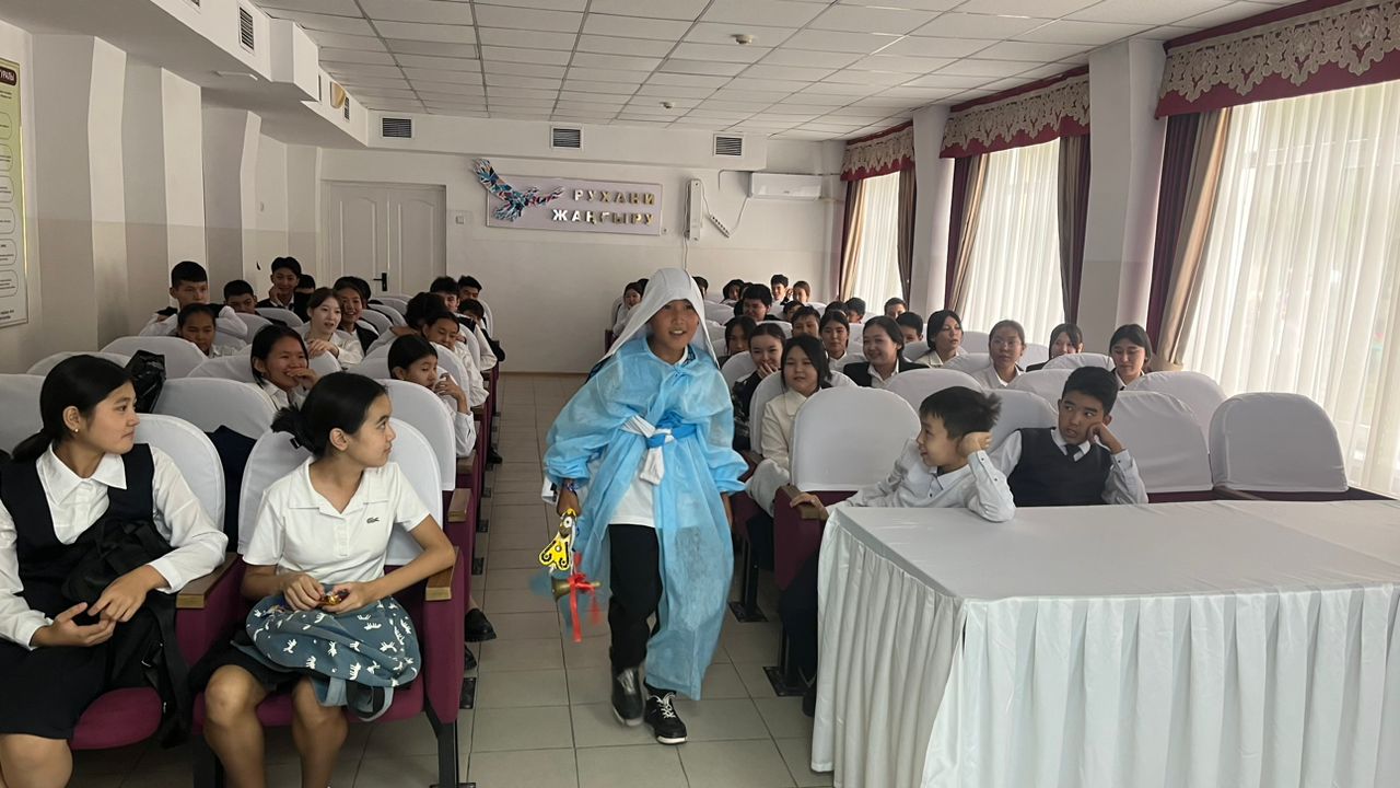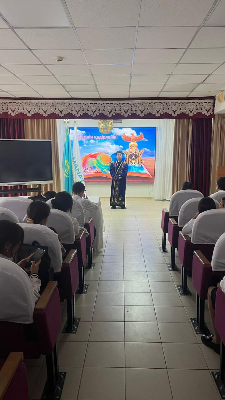 "Тәрбие басы - тіл" атты тілдер мерекесіне арналған онкүндікте қазақ тілі мен әдебиет пәні мұғалімі Н.Құмарбек "Тіл тұғыры- ұлт ғұмыры" тақырыбында 5-7 сынып оқушыларымен әдеби кеш өткізді.