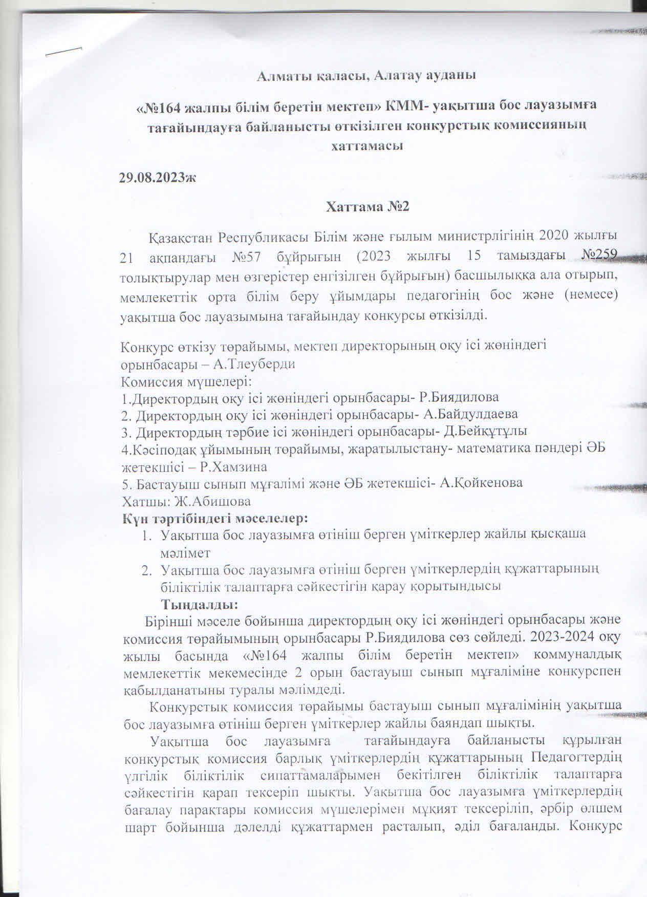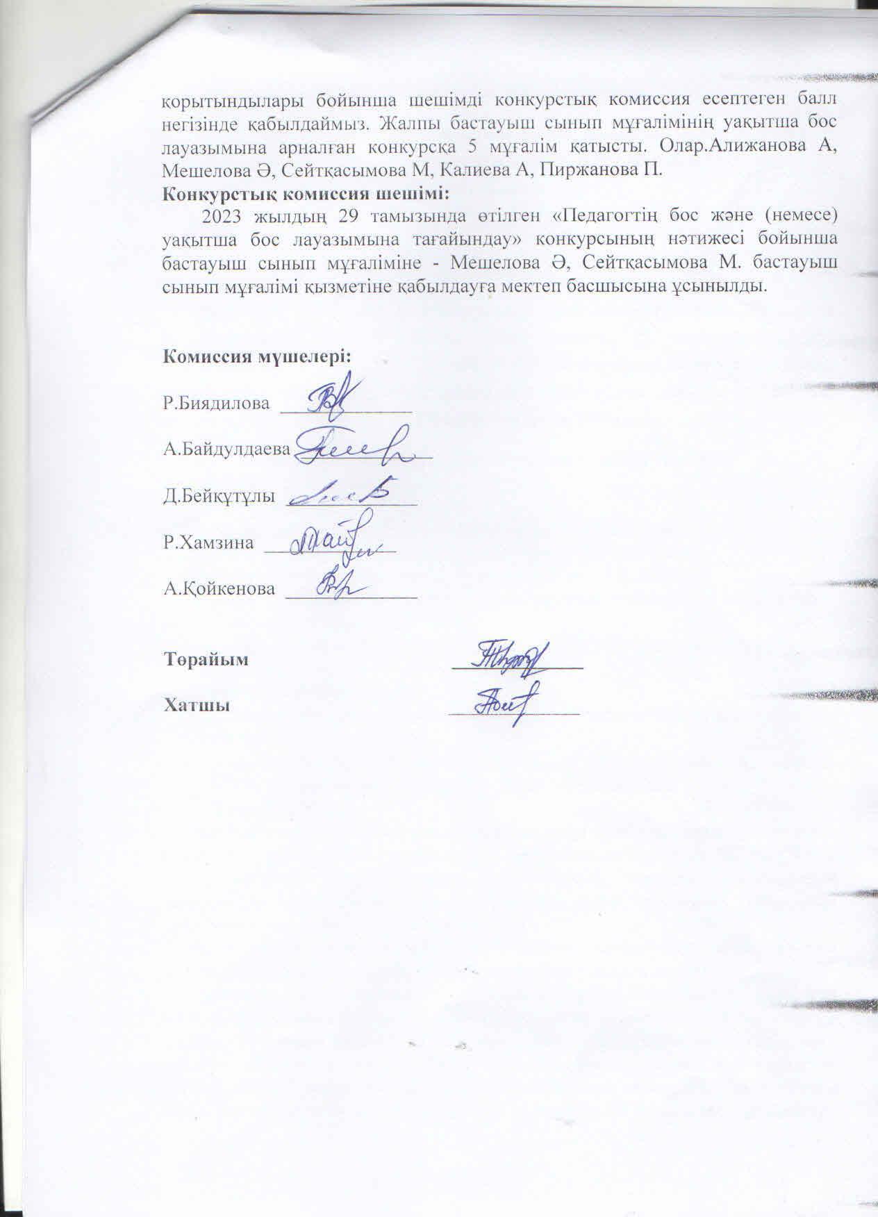 » Конкурс комиссиясының хаттамасы