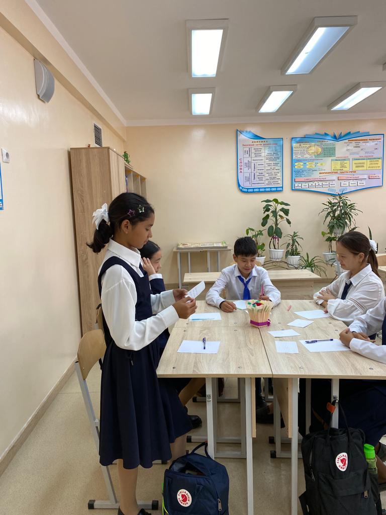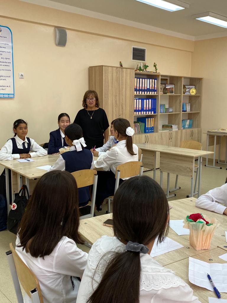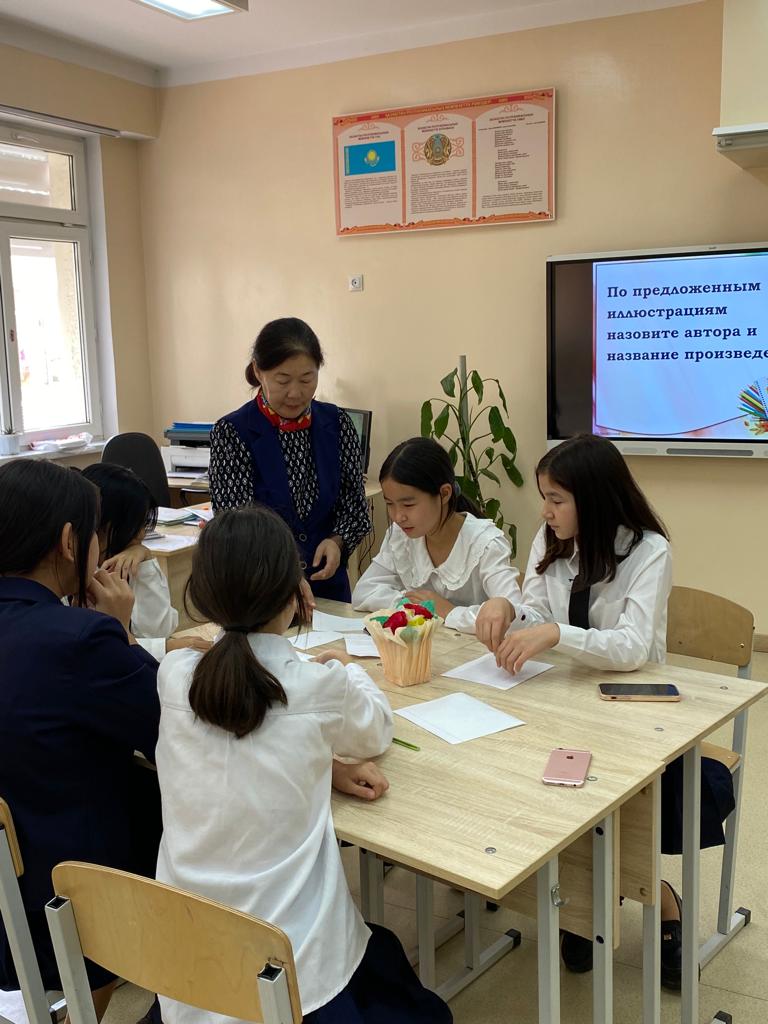 "Тәрбие басы - тіл" атты тілдер мерекесіне арналған онкүндікте орыс тілі мен әдебиеті пәні мұғалімдері Г.Халметова мен Ш.Мырзабаева "Мудрая сова " тақырыбында 7 сынып оқушыларымен интеллектуалды сайыс өткізді.