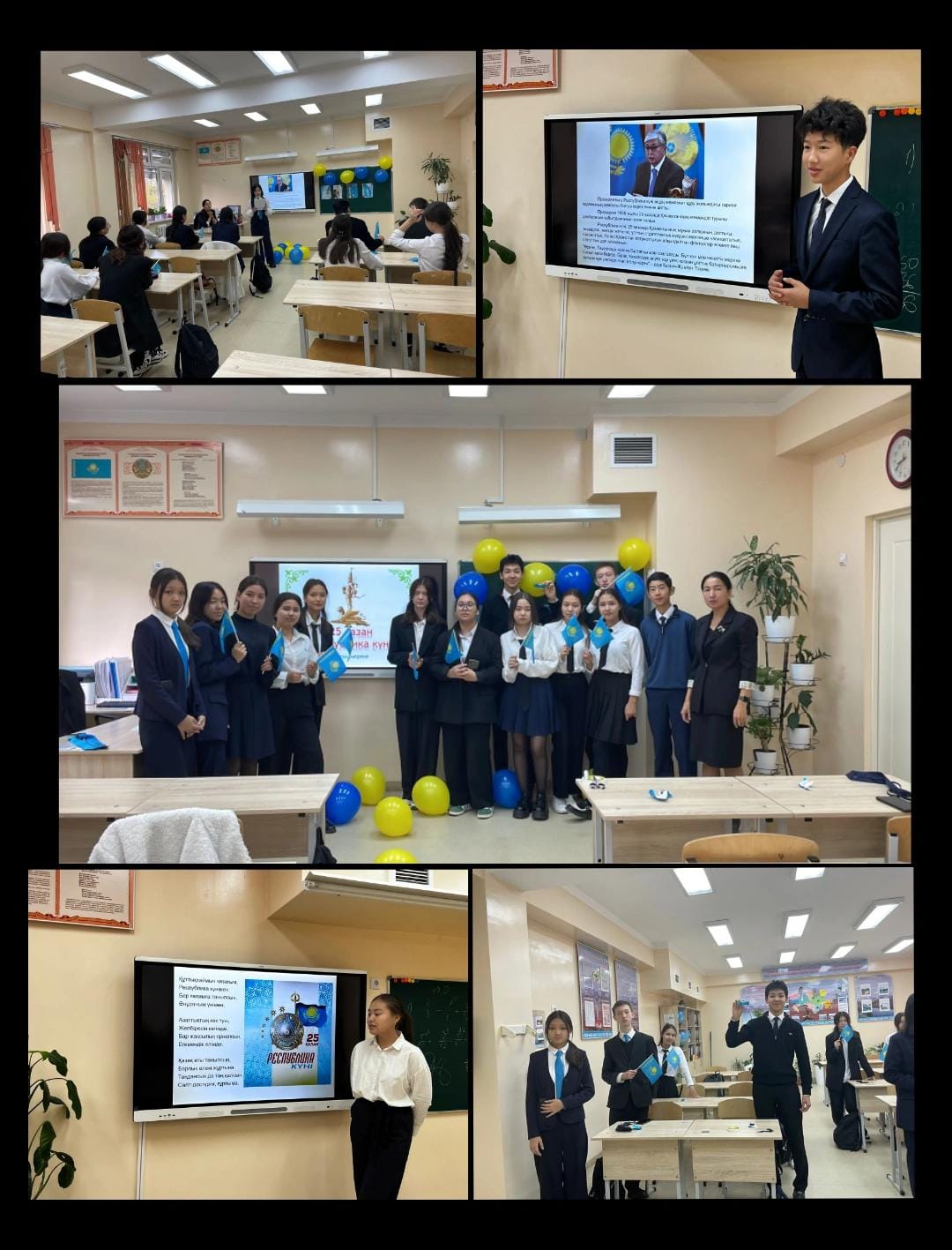 Алатау ауданы №164 жалпы білім беретін мектебінде Республика күніне орай сынып сағаттары өткізілді. Білім алушылардың бойына туған еліне деген құрмет пен отаншылдық құндылығын дарыту мақсатында өткізілген шара өз дәрежесінде өтті.