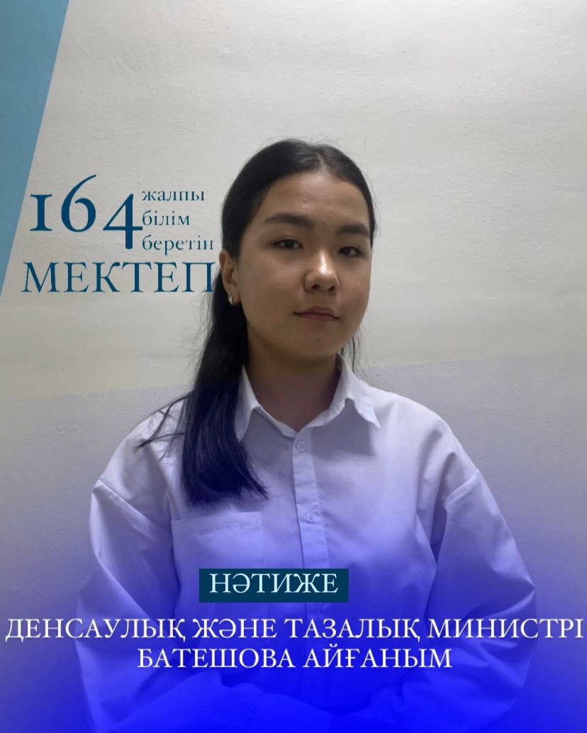 09 қараша 2023 0 1 2 3 4 5 №164 Жалпы білім беретін мектебіміздің Денсаулық және Тазалық Министрі 9 «А» сынып оқушысы Батешова Айғаным болып сайланды. Осы беттің QR-коды:QR-код этой страницы: