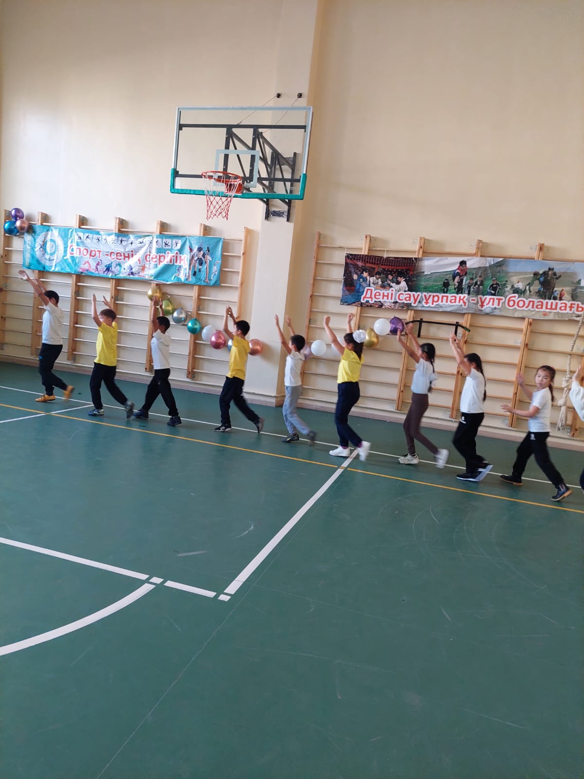 "Еңбекке жастан, өнерге бастан" атты Өнер бірлестігі пәні мұғалімдері онкүндігі барысында дене шынықтыру пәні мұғалімі Б.Сатжан 4 "Г" сыныбымен "Денсаулықты нығайтуға арналған жаттығулар мен эстефеталық ойындар" тақырыбында сабақ өткізді