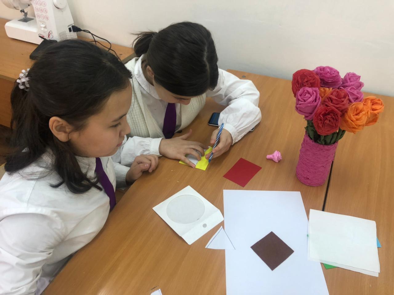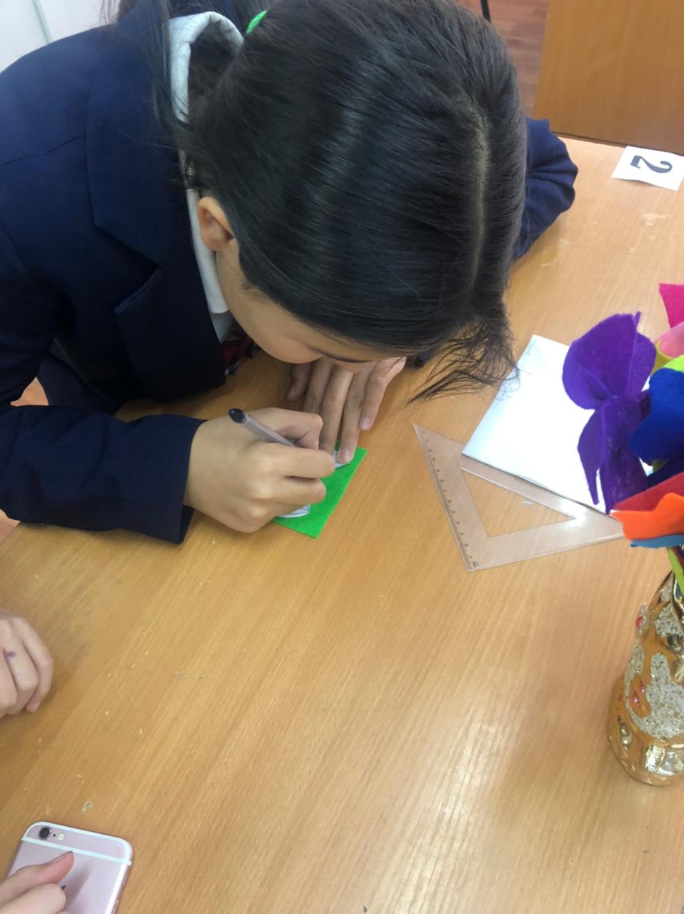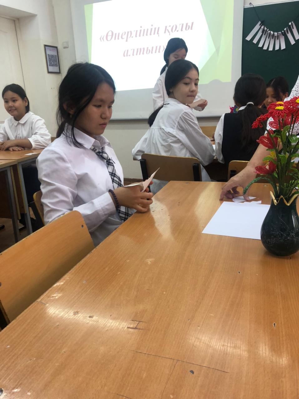 №164 Жалпы білім беретін мектеп » Ақпарат » "Еңбекке жастан, өнерге бастан" атты Өнер әдістемелік бірлестігі пәні мұғалімдері онкүндігінде көркем еңбек пәні мұғалімі Р.Дюсебекова 7 сынып оқушыларымен "Өнерлінің қолы алтын" тақырыбында сайыс сабақ өткізді.