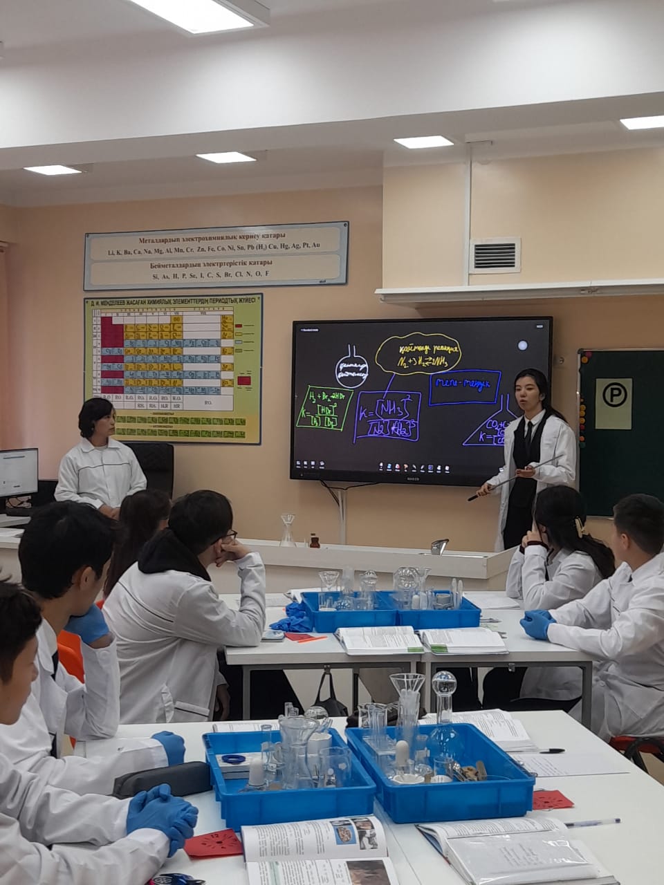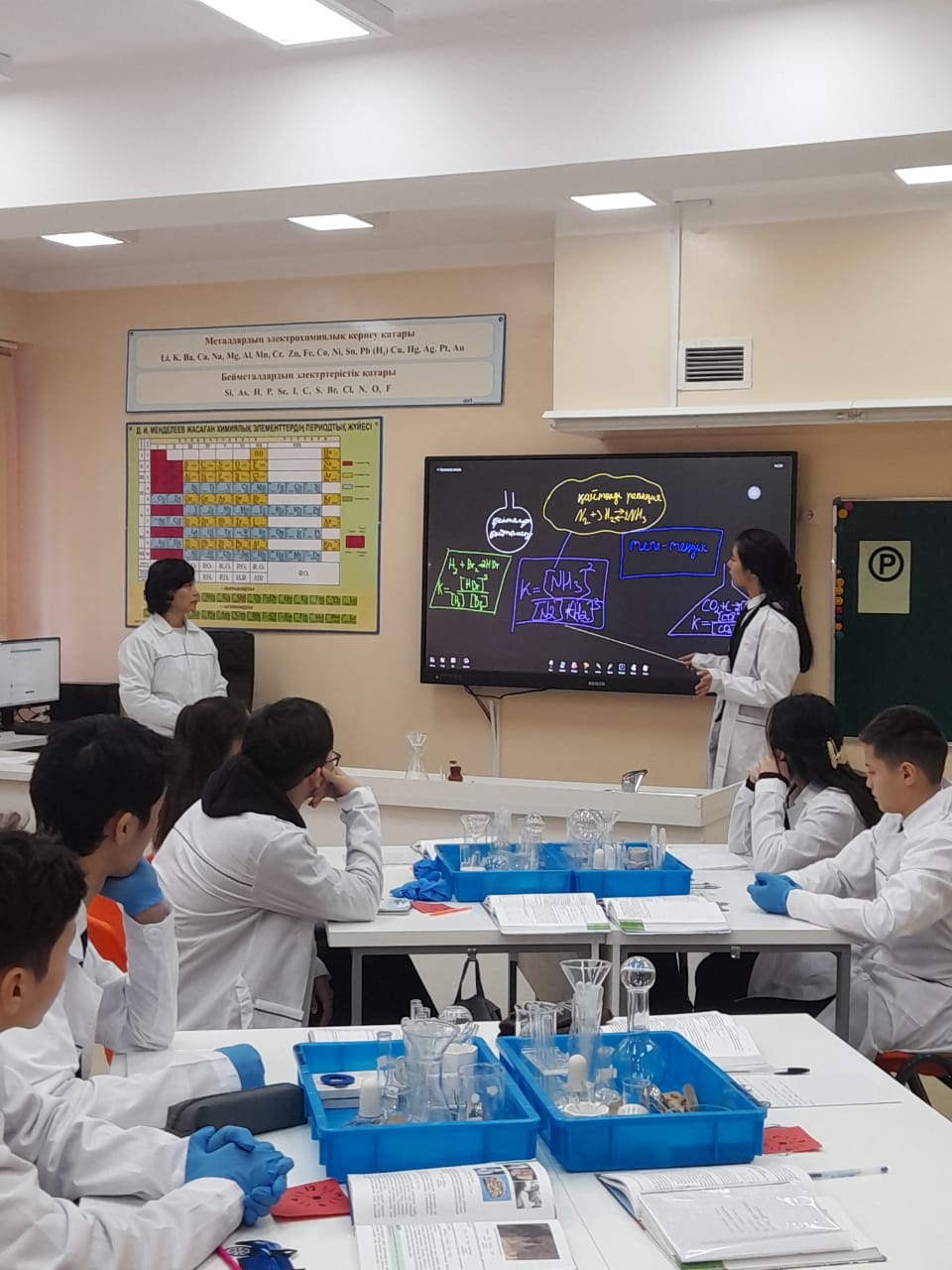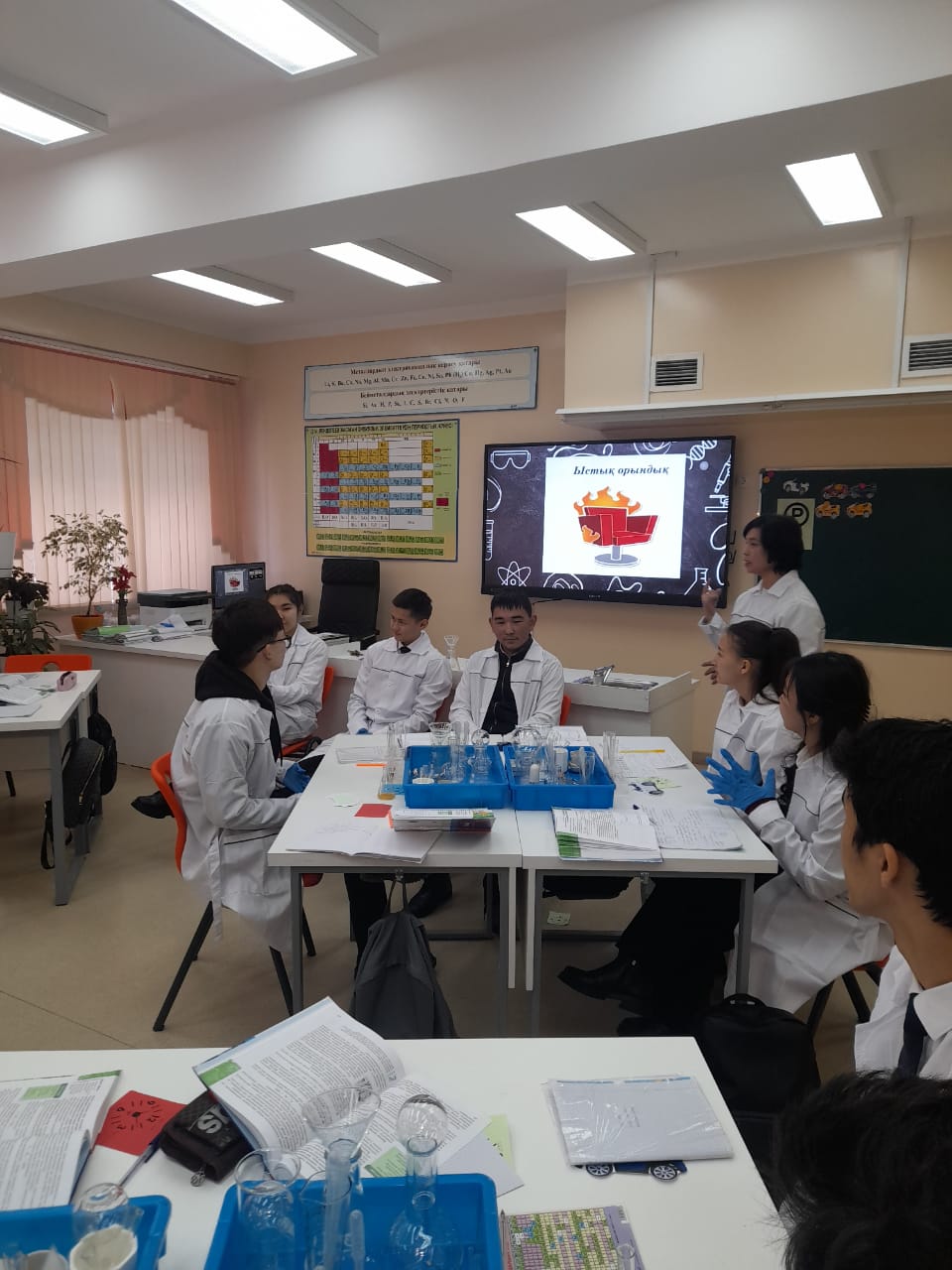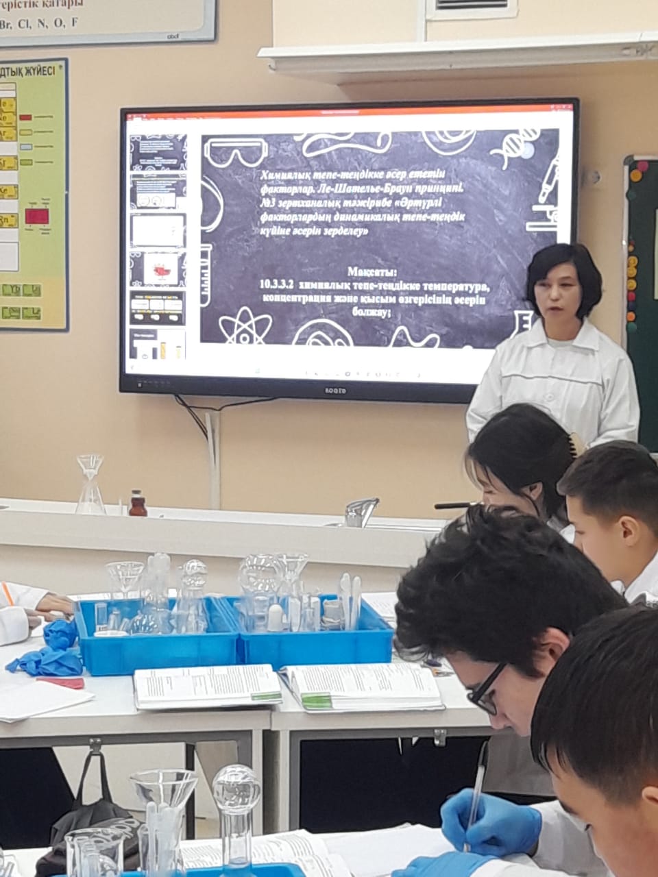 Ғылыми-жаратылыстану пәндері бірлестігі онкүндігінде химия пәні мұғалімі М.Кинаятова 10 "А" сыныбымен "Химиялық тепе-теңдікке әсер ететін факторлар. Ле-Шаталье-Браун принципі" тақырыбында ашық сабақ өткізді
