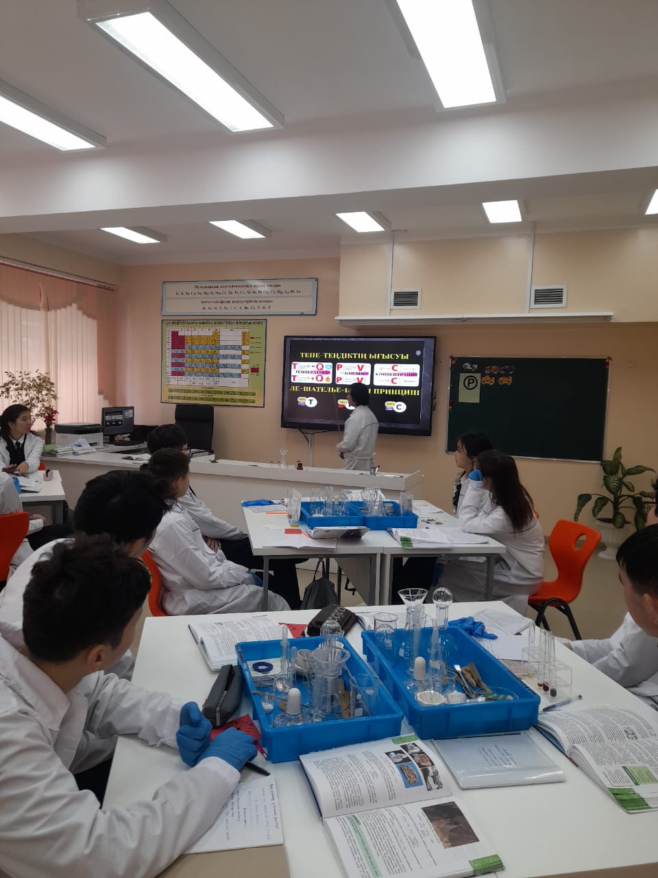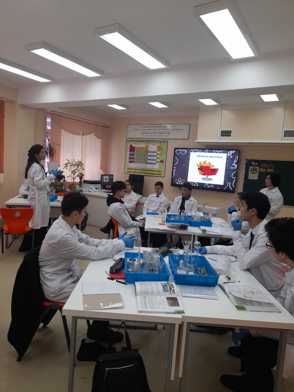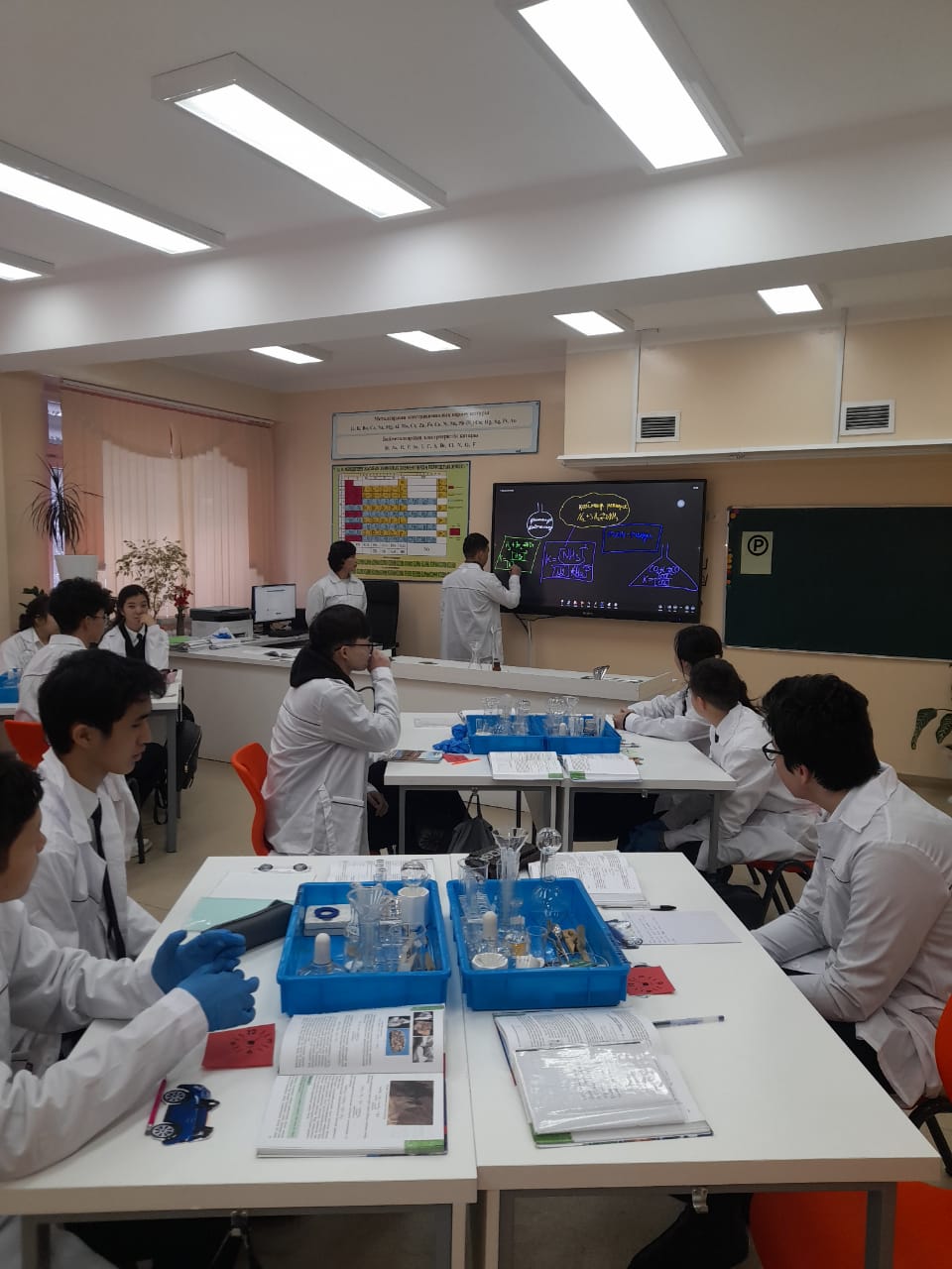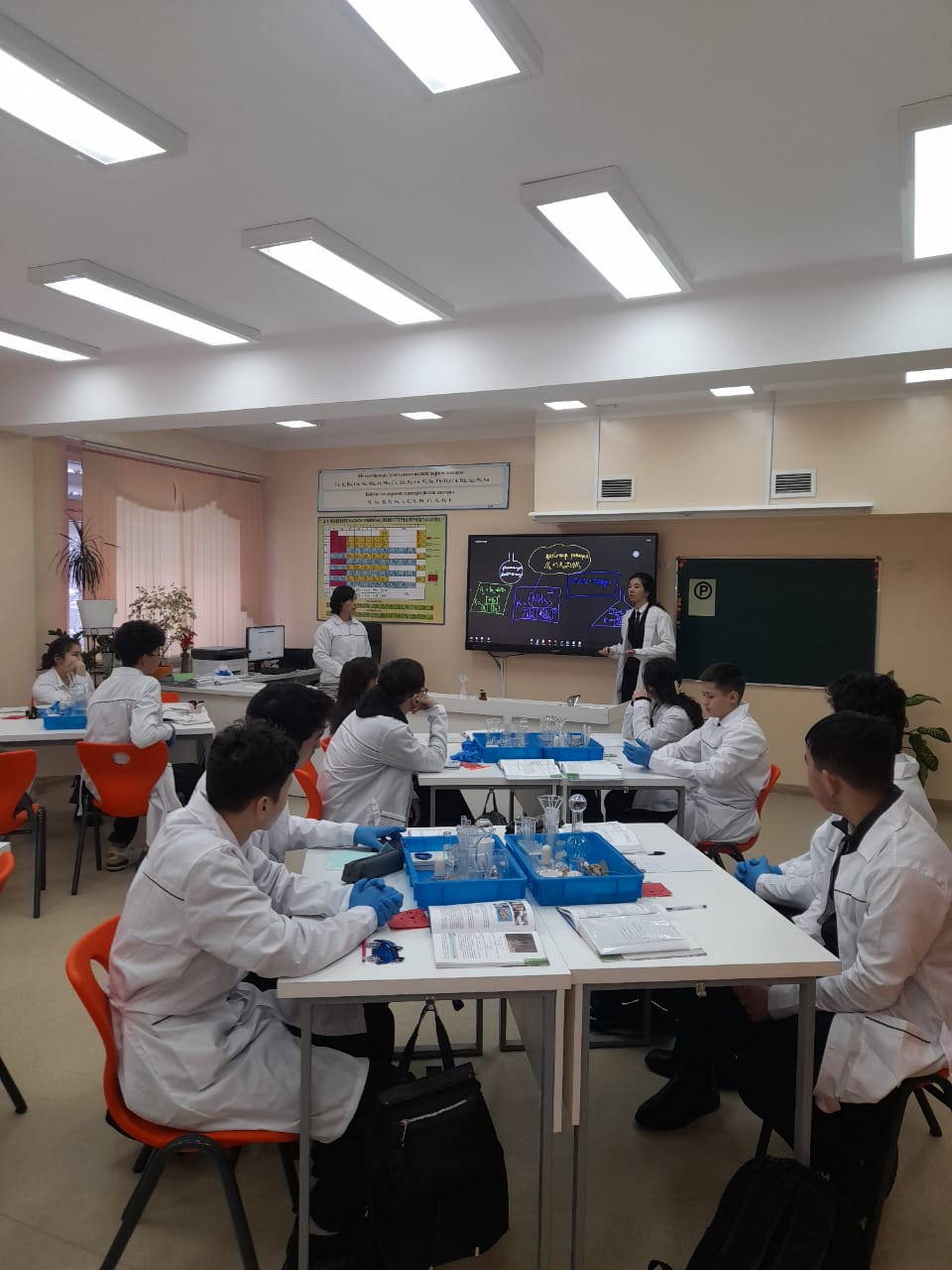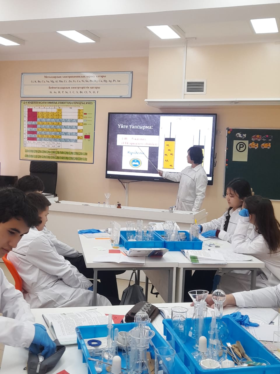 Ғылыми-жаратылыстану пәндері бірлестігі онкүндігінде химия пәні мұғалімі М.Кинаятова 10 "А" сыныбымен "Химиялық тепе-теңдікке әсер ететін факторлар. Ле-Шаталье-Браун принципі" тақырыбында ашық сабақ өткізді