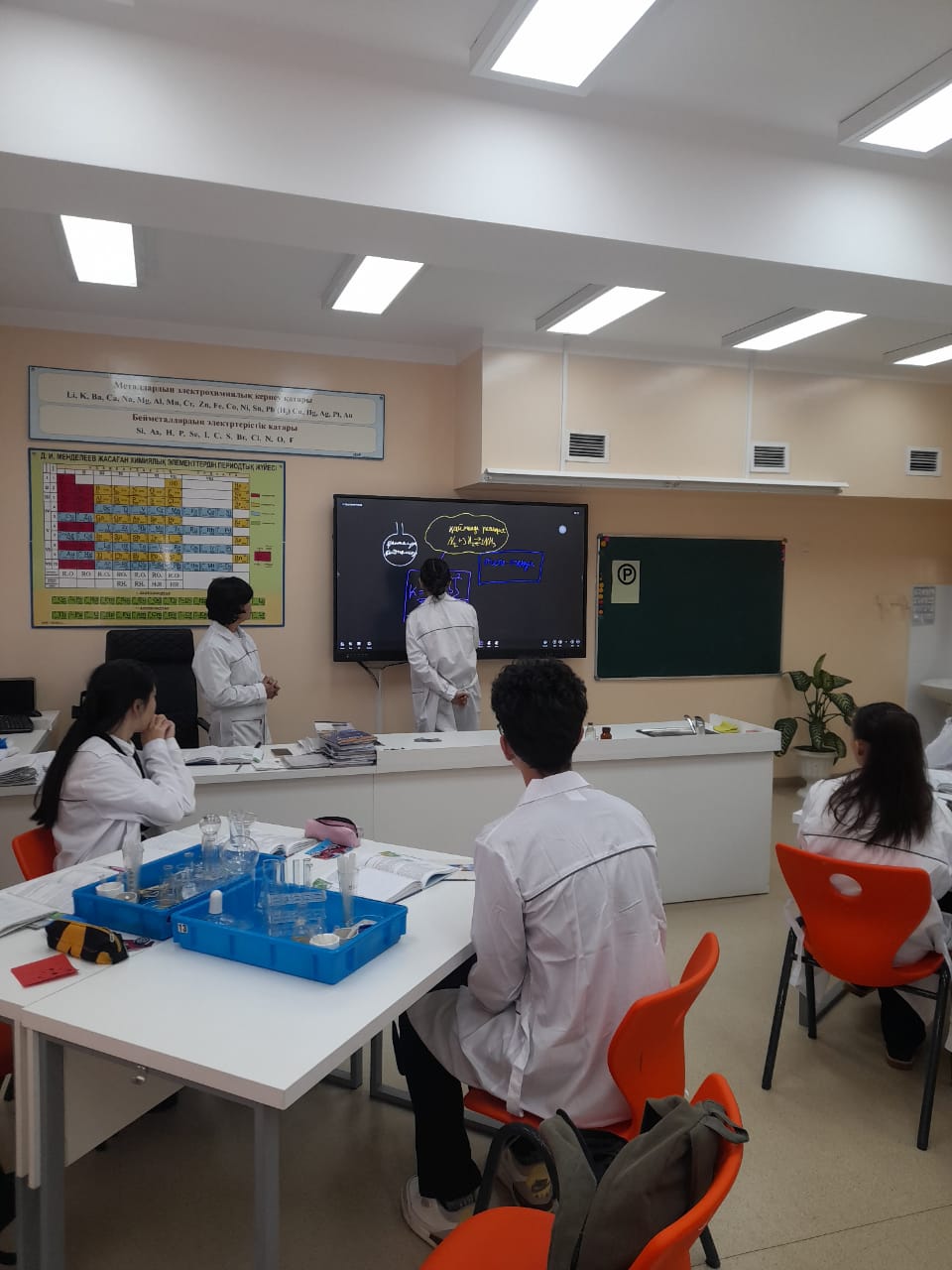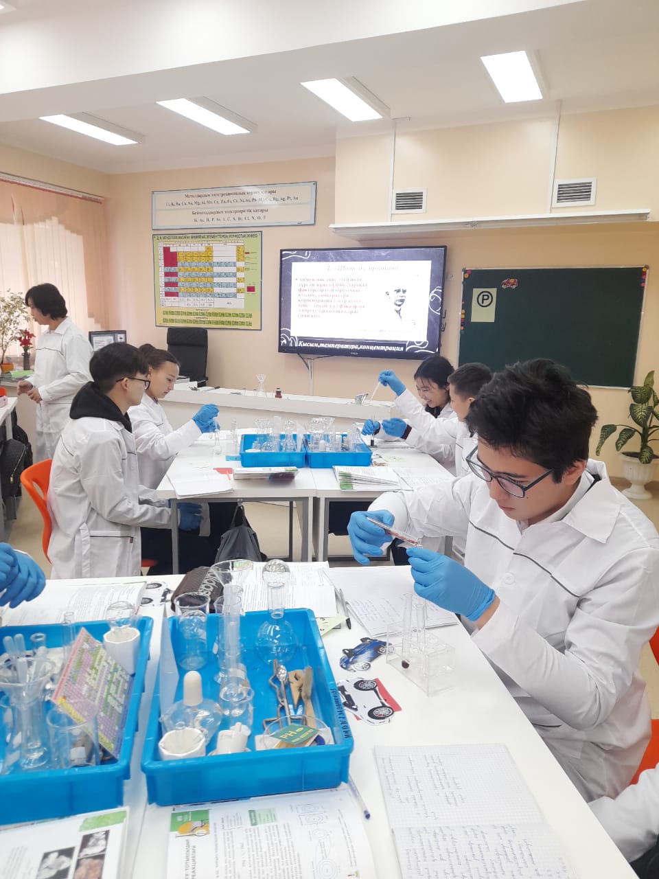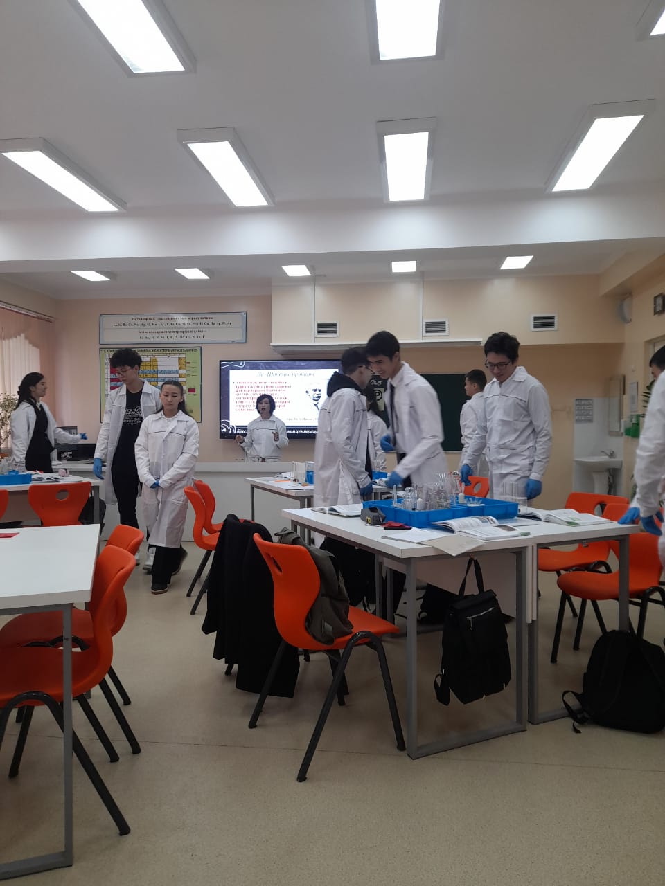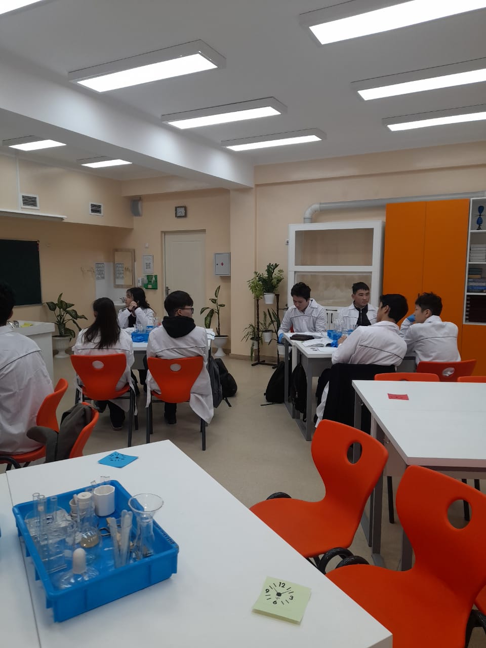 Ғылыми-жаратылыстану пәндері бірлестігі онкүндігінде химия пәні мұғалімі М.Кинаятова 10 "А" сыныбымен "Химиялық тепе-теңдікке әсер ететін факторлар. Ле-Шаталье-Браун принципі" тақырыбында ашық сабақ өткізді