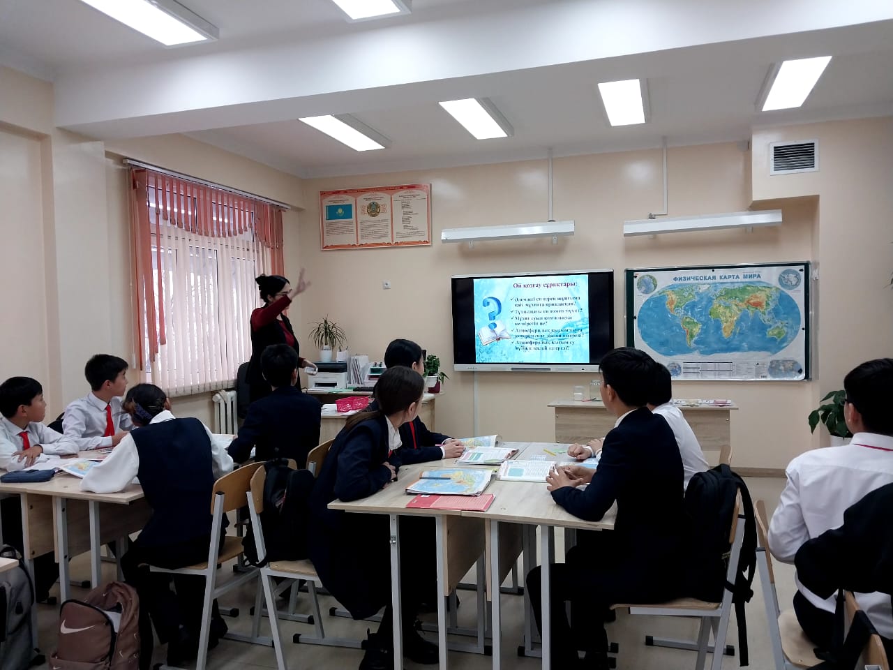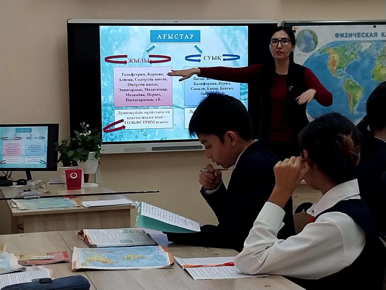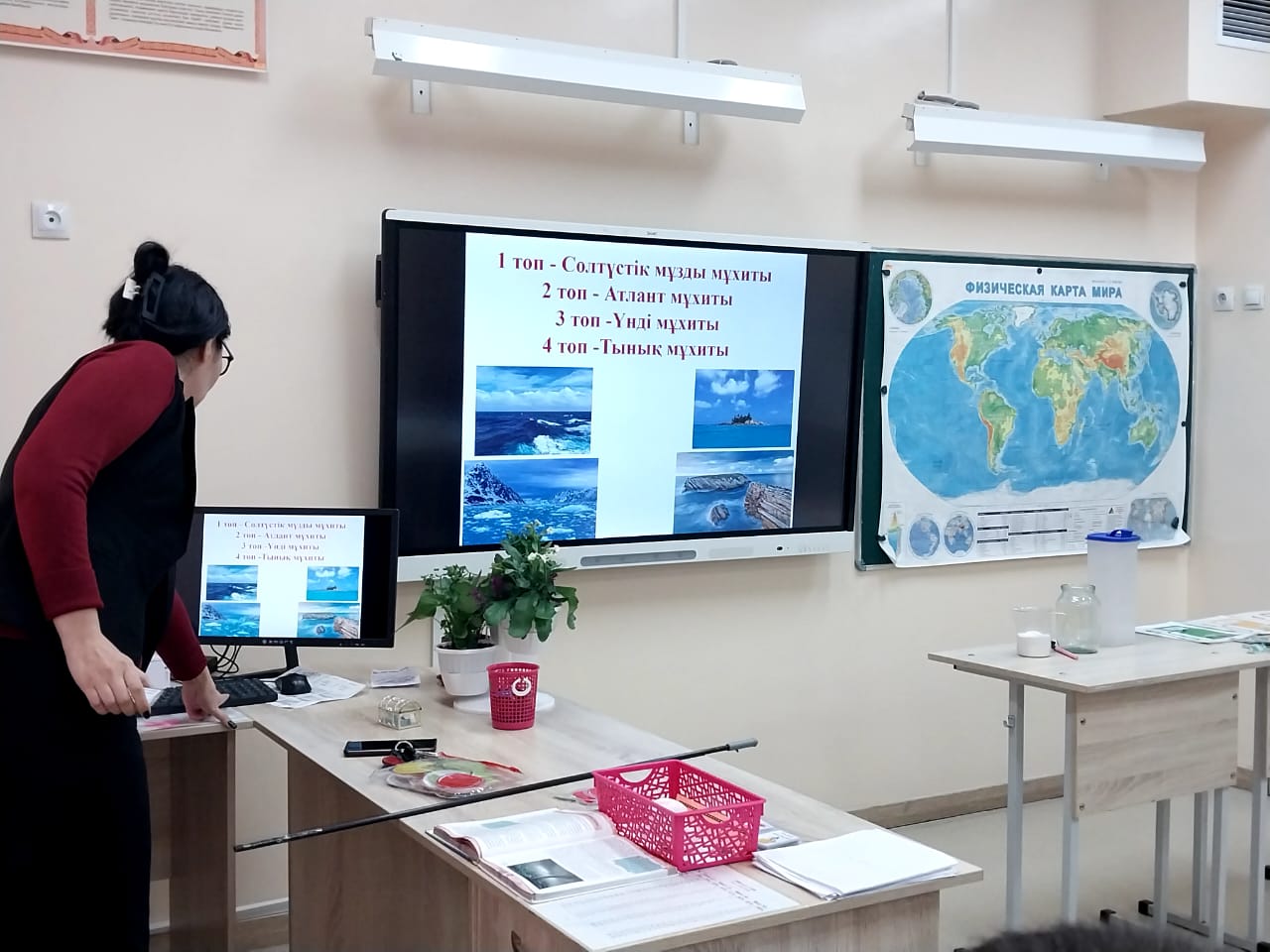 №164 Жалпы білім беретін мектеп » Ақпарат » "Сүйіне білсең табиғат, сұлулыққа тұнып тұр" атты ғылыми-жаратылыстану пәндері бірлестігі онкүндігі барысында география пәні мұғалімі А.Алтаева 7"Б" сыныбымен "Мұхит суларының қозғалыстары" тақырыбында ашық сабақ өткізді