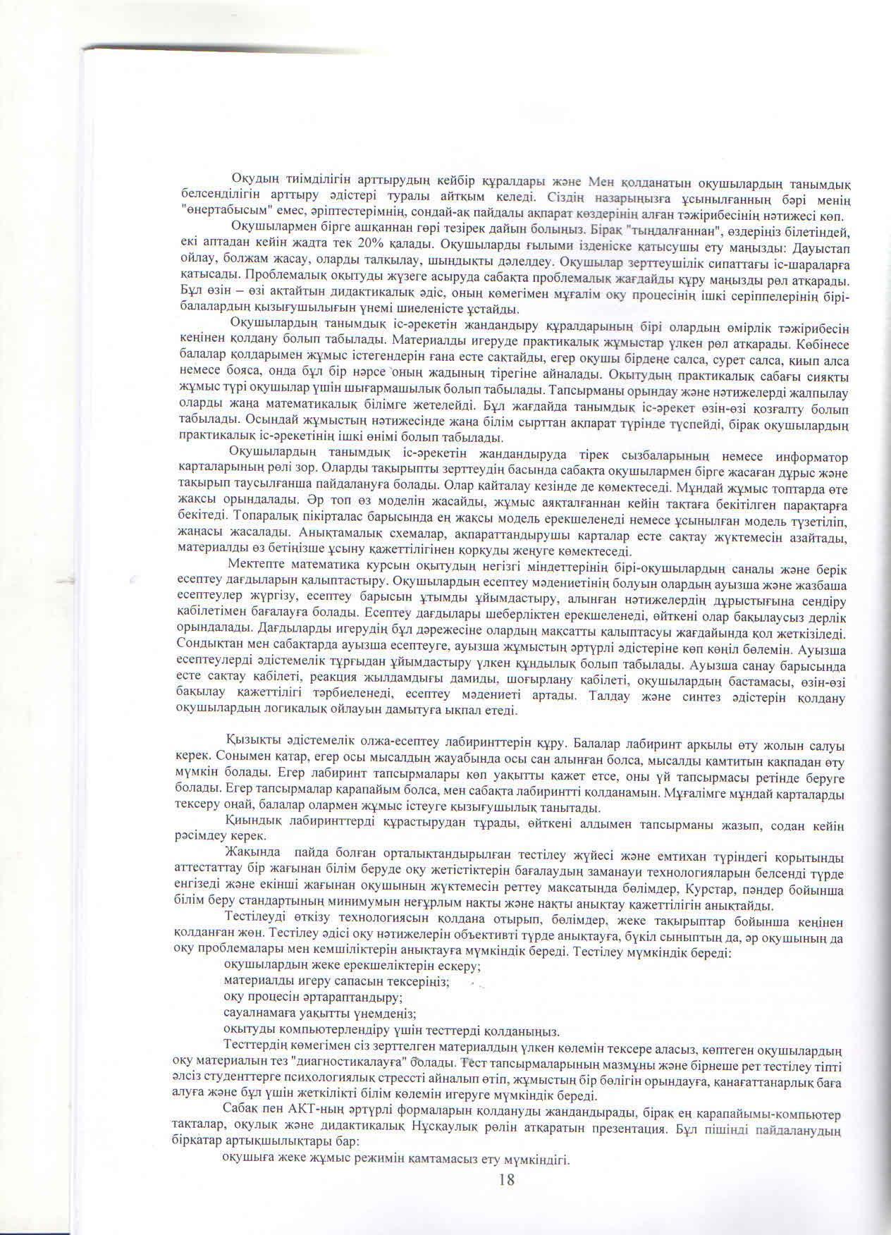 "Білім әлемі" республикалық, ғылыми-танымдық педагогикалық журналына математика пәні мұғалімі У.Алиеваның "Математика пәнінен қолданылатын заманауи педагогикалық технологиялар" тақырыбында мақаласы шығып, Дипломмен марапатталды.