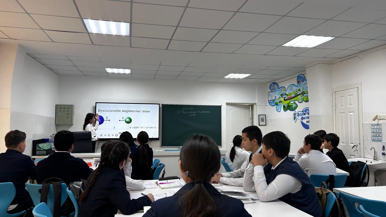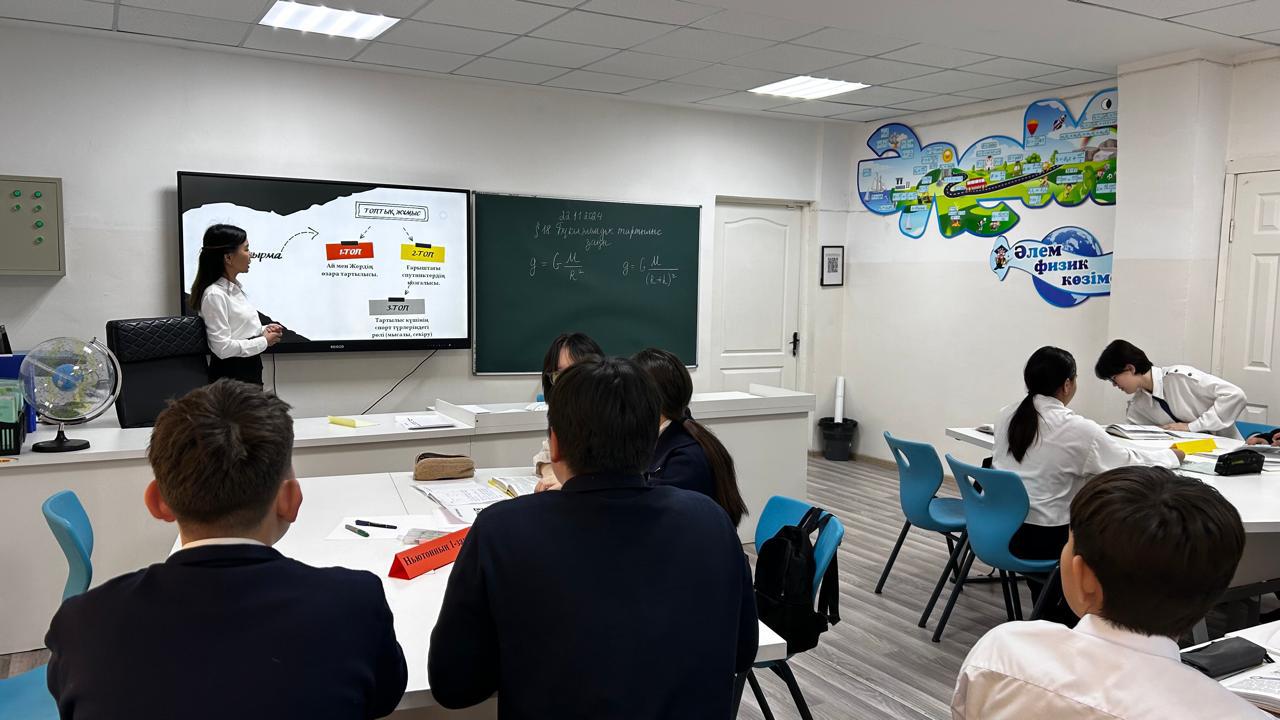 "МИФ-LIFE, МИФ-LIKE" тақырыбында математика, информатика және физика пәндері бірлестігі онкүндігінің іс-шара жоспарына сәйкес физика пәні мұғалімі А.Ділдан 9 "А" сыныбымен "Бүкіләлемдік тартылыс заңы" тақырыбында ашық сабақ өткізді.