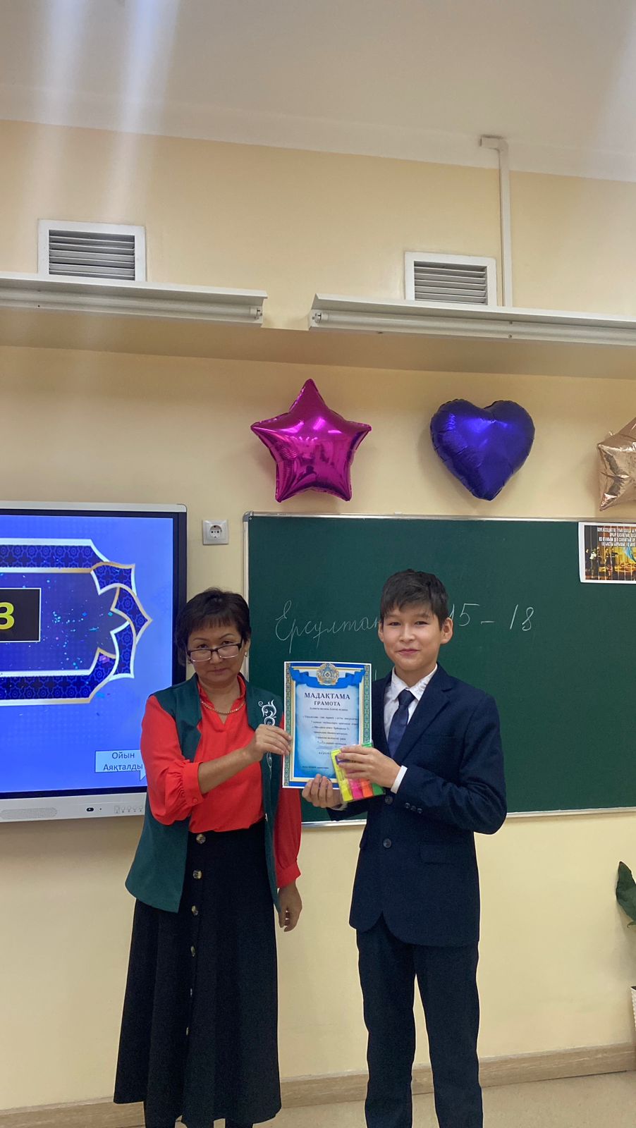 "Тәуелсіздік- таң нұрым" атты қоғамдық-гуманитарлық пәндер бірлестігі онкүндігінің жоспарына сәйкес тарих пәні мұғалімдері А.Сарина мен М.Ерашева 7 сынып оқушыларымен "Миллион кімге бұйырады?" танымдық ойынын өткізді