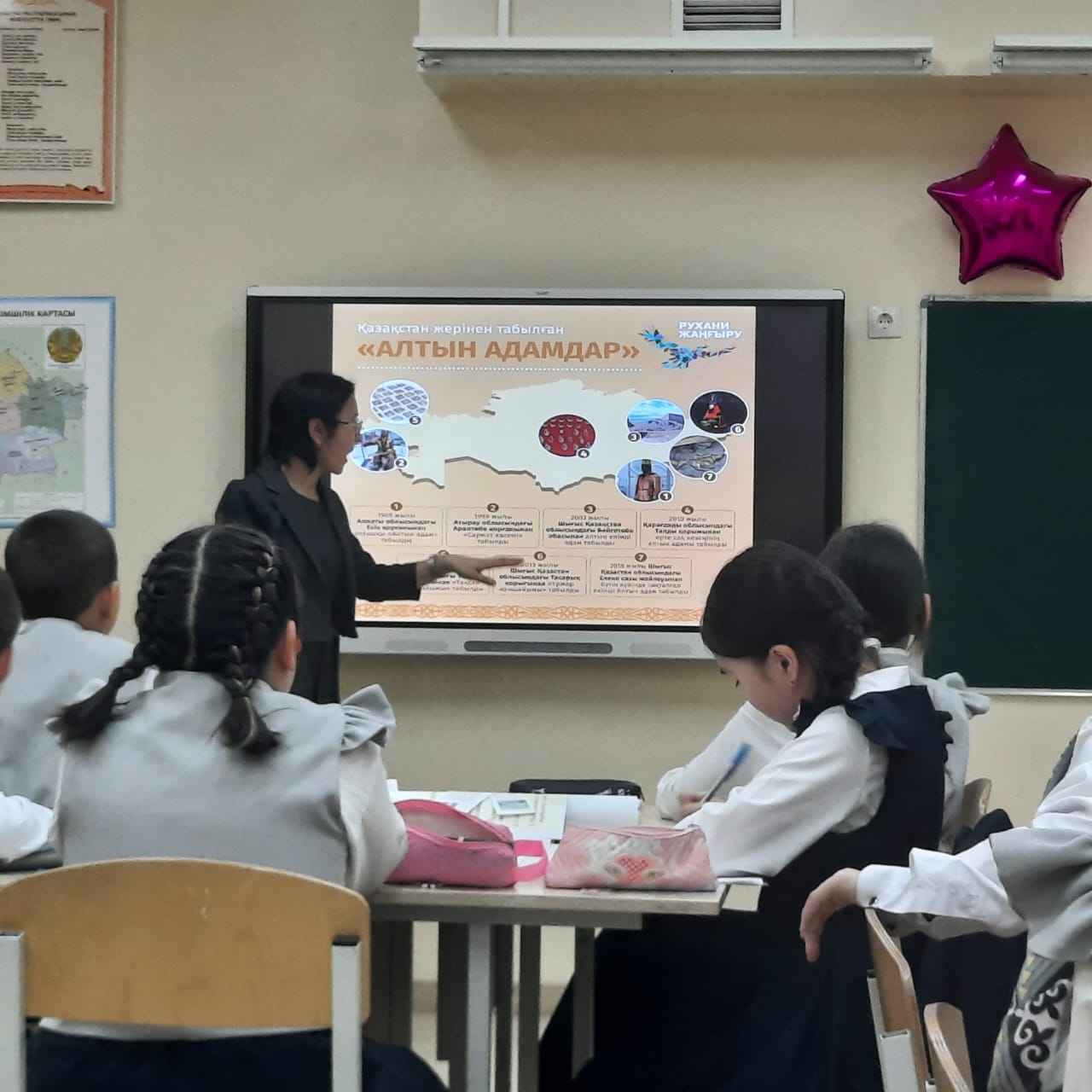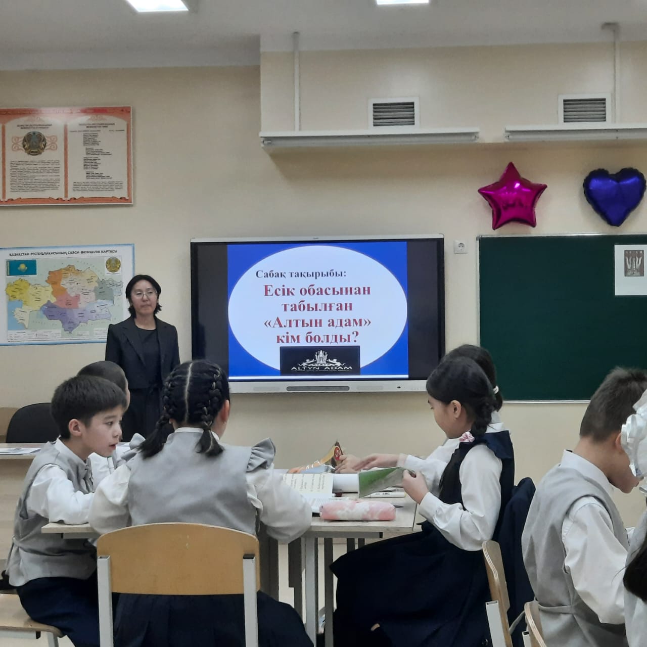 №164 Жалпы білім беретін мектеп » Ақпарат » Тәуелсіздік- таң нұрым" атты қоғамдық-гуманитарлық пәндер бірлестігі онкүндігінің жоспарына сәйкес тарих пәні мұғалімі А.Сарина 5 "Б" сыныбымен ""Алтын адам"археологиялық олжасы" тақырыбында ашық сабақ өткізді