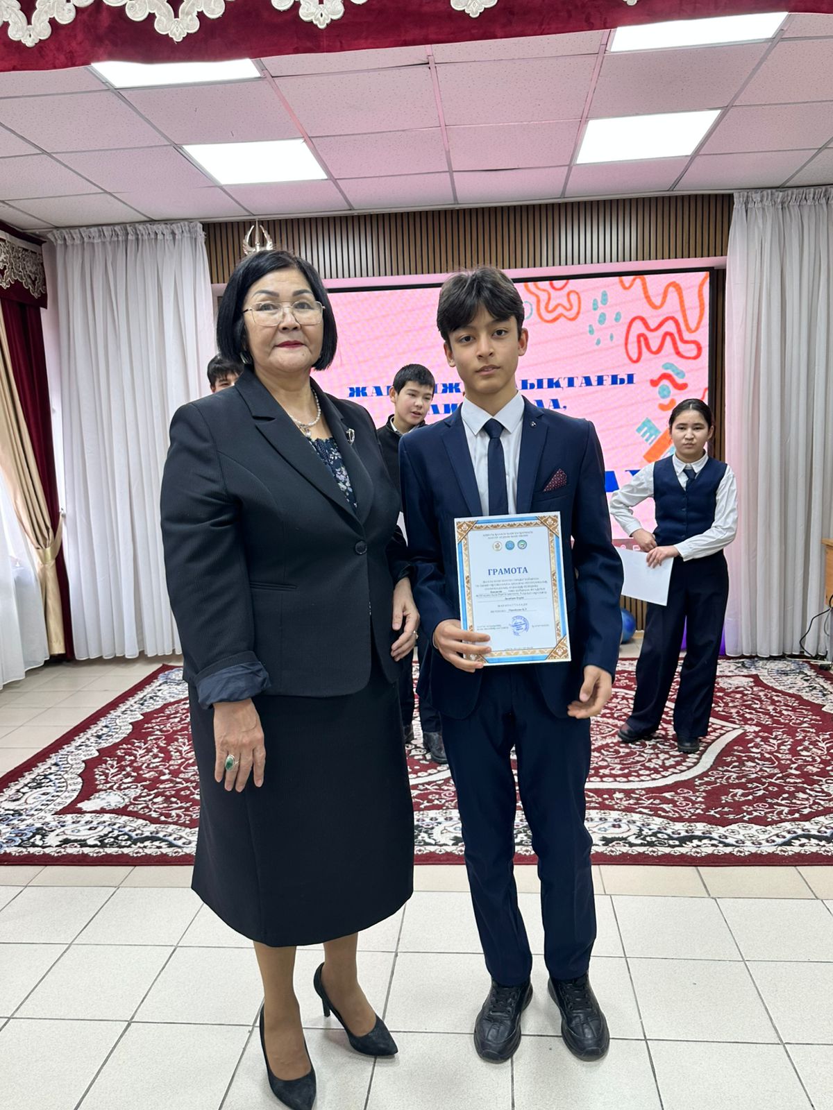 Жалпы білім беретін пәндер бойынша 7-8 сынып оқушыларына арналған республикалық жасөспірімдер олимпиадасының аудандық кезеңіне БИОЛОГИЯ пәні бойынша қатысып, жүлделі грамотаға ие болған 8 "Б" сынып оқушысы Дадабаев Керім.