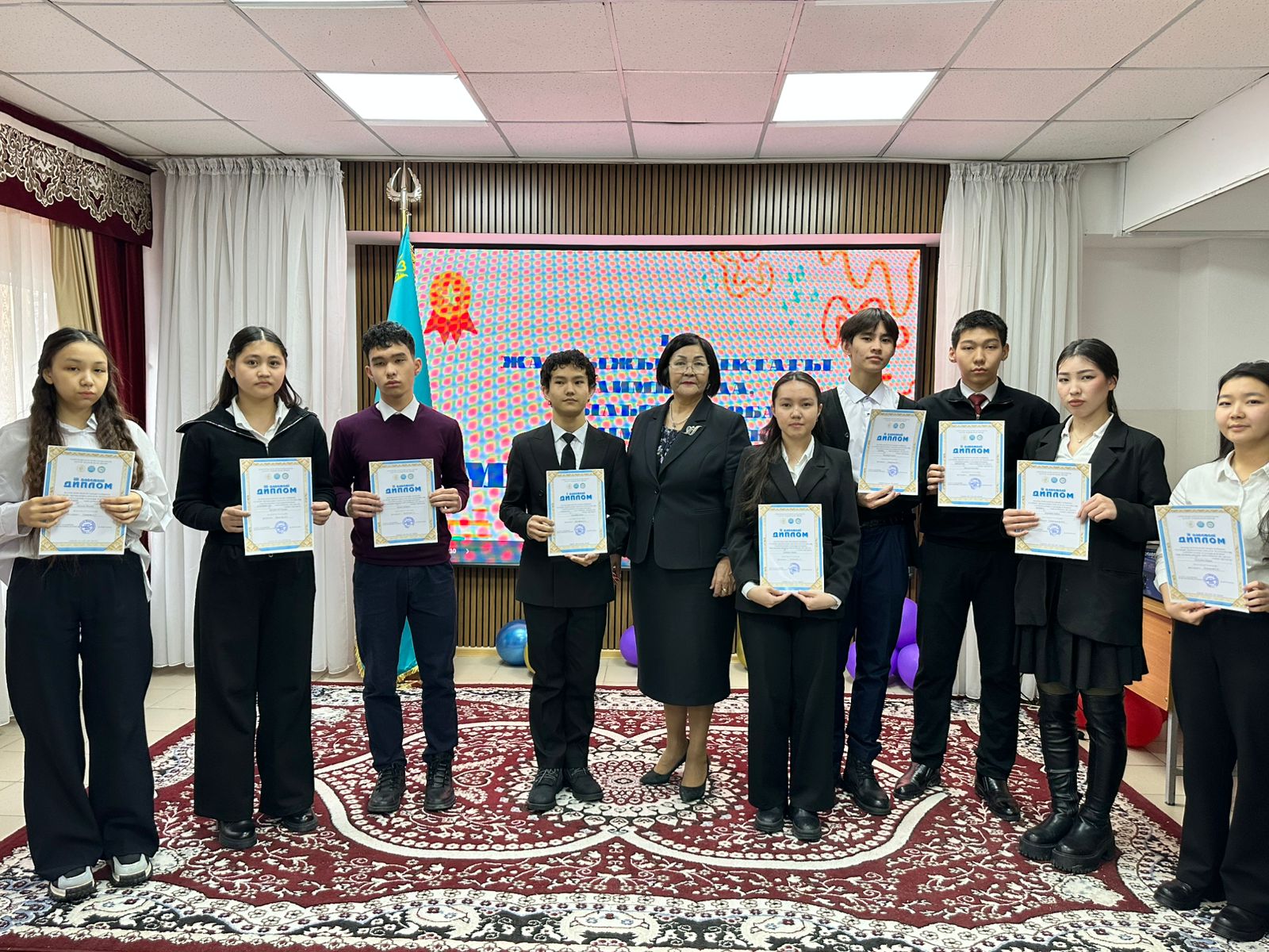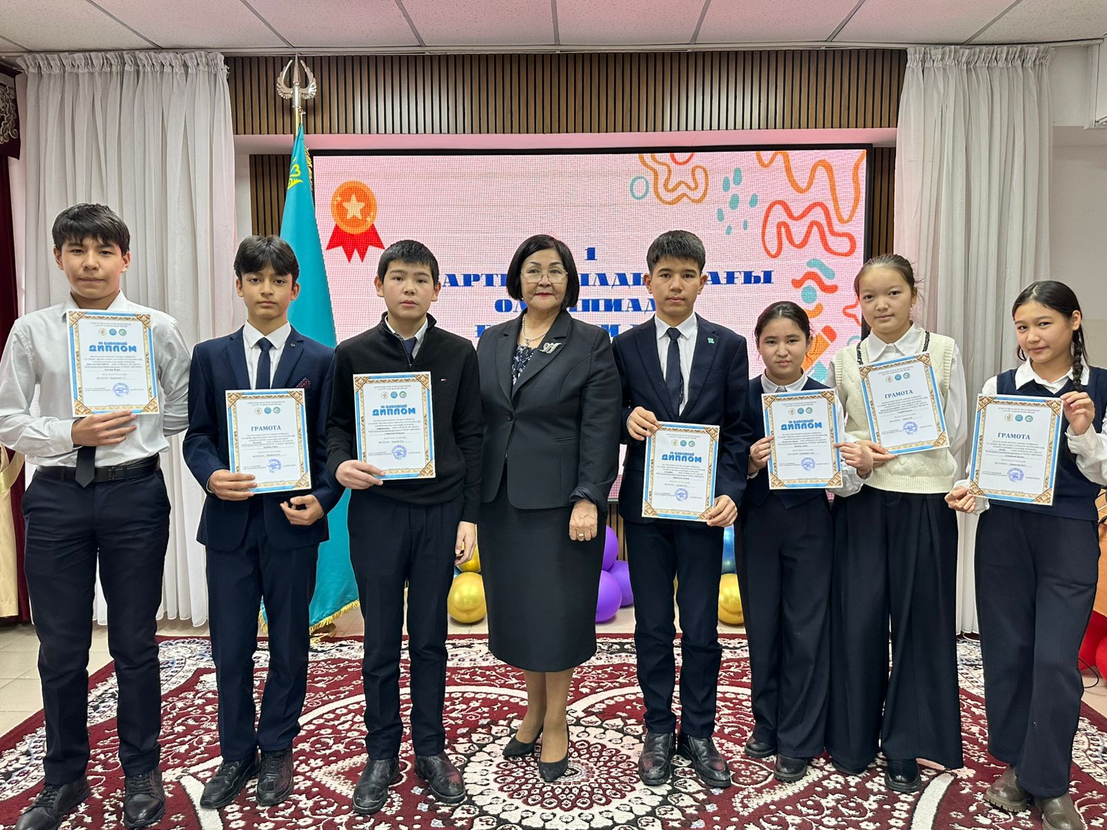 Жалпы білім беретін пәндер бойынша 7-8 сынып оқушыларына арналған республикалық жасөспірімдер және де 9-11 сыныптардың пәндік олимпиадасының аудандық кезеңінің жеңімпаздарын марапаттау сәті.