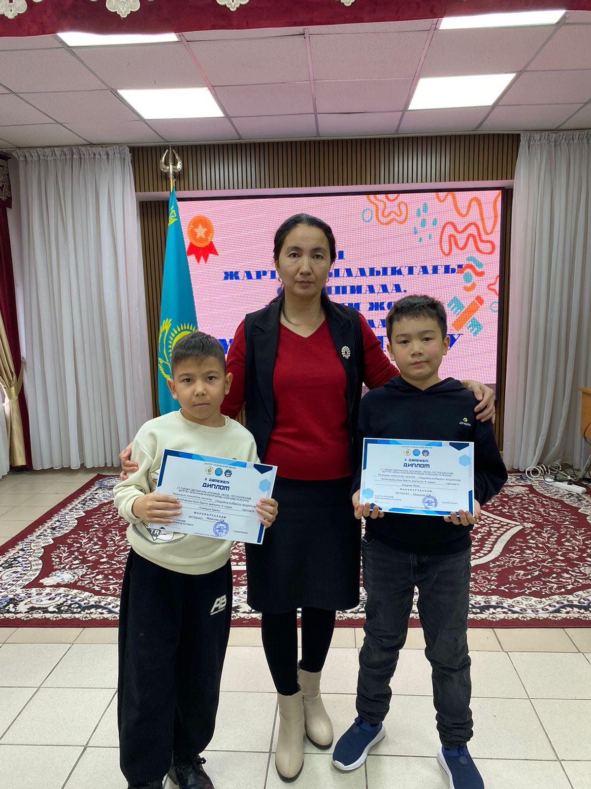 2-7 сынып оқушыларының зерттеу жұмыстары мен шығармашылық жобаларының "ЗЕРДЕ" республикалық конкурсының аудандық кезеңінің "Медицина, психология, экология" секциясы бойынша жүлделі ІІ орын иегерлері 4 сынып оқушылары Е.Алмазұлы, Р.Базархан.