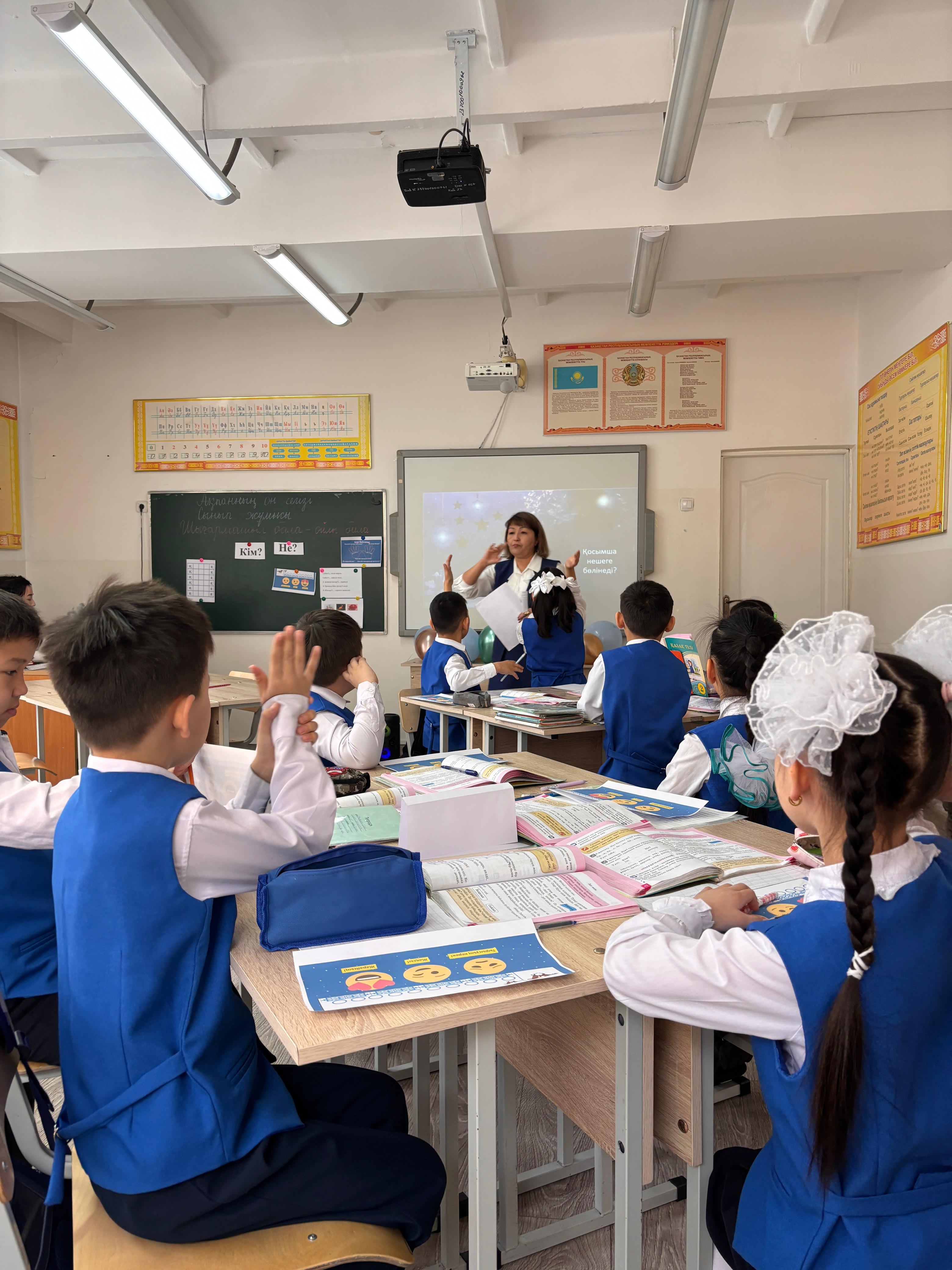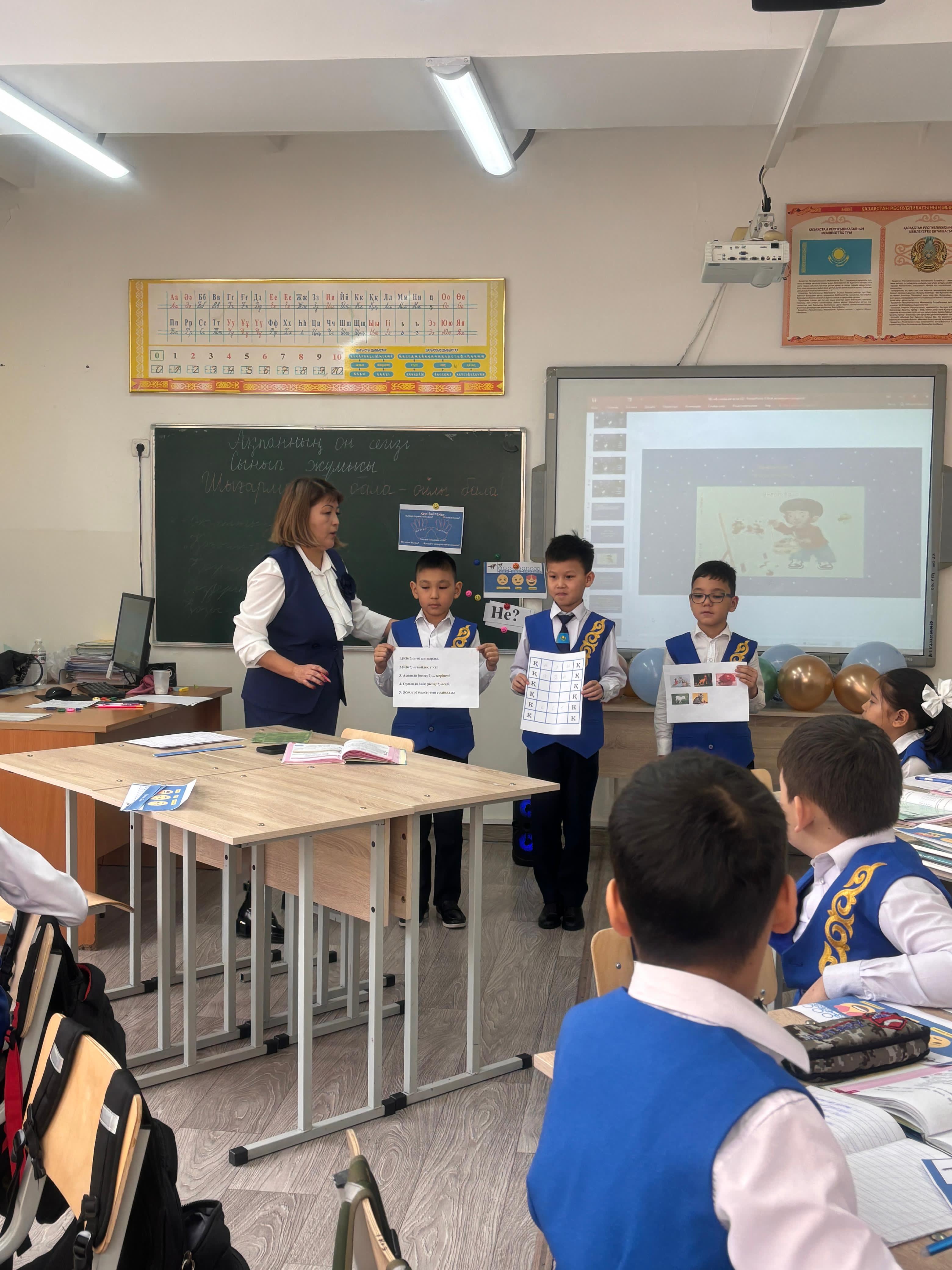"Бастауышым бастамам, білім жолын бастаған" атты тақырыбындағы бастауыш пәндері бірлестігі онкүндігінің жоспарына сәйкес 2 "В" сыныбымен Қазақ тілі пәнінен З.Худайбергенова "Зат есім" тақырыбында ашық сабақ өткізді.